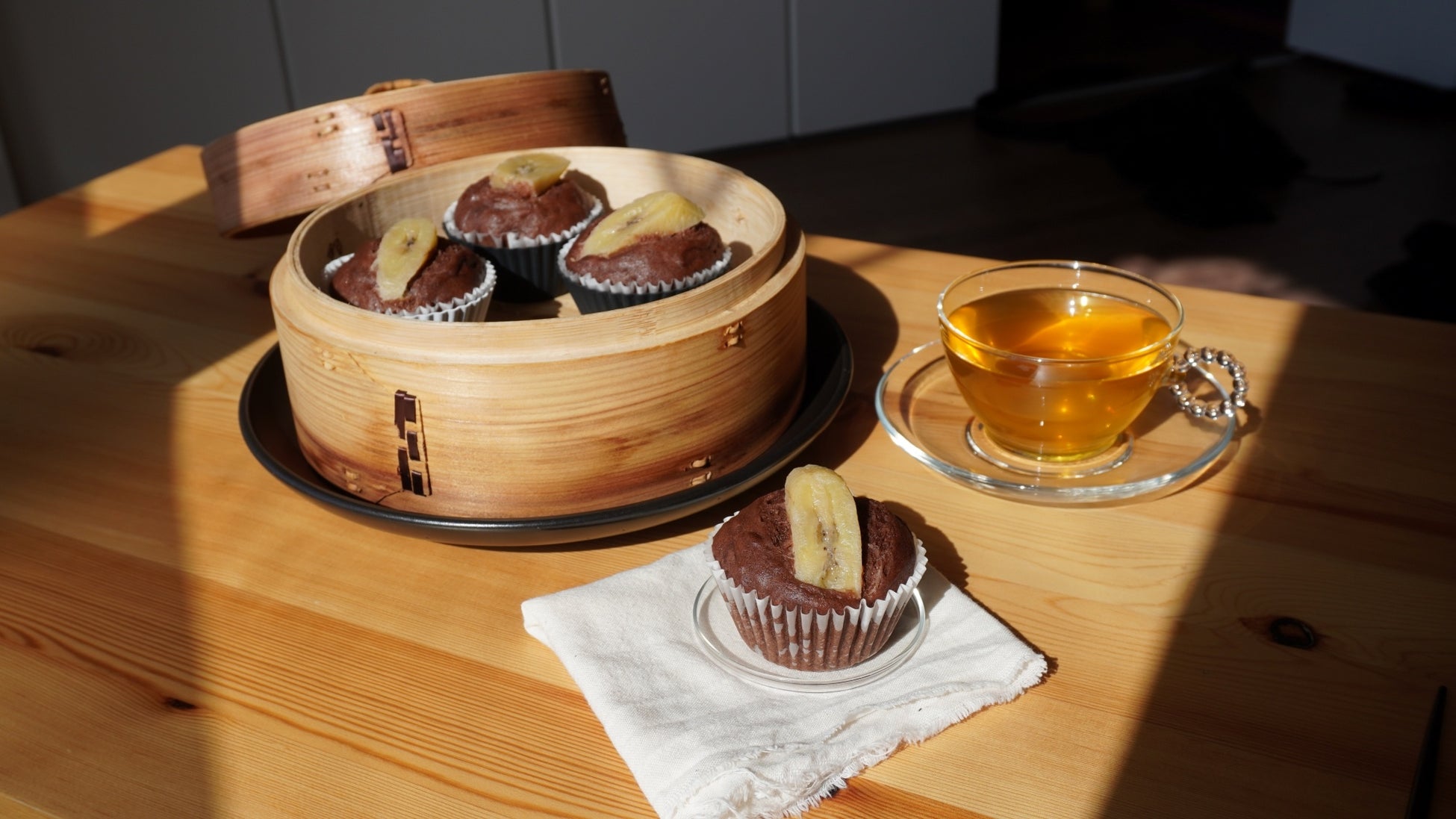 フォーク1本で混ぜて蒸すだけ! 「チョコバナナ蒸しパン」のレシピカード