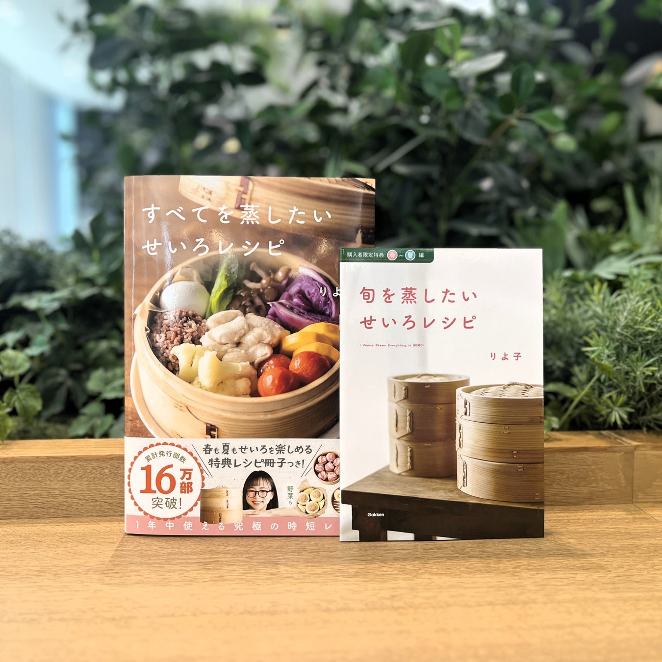本書は、「せいろ蒸し」に特化したInstagram投稿が注目を集める、りよ子さんの初レシピ本です。昨年8月の予約開始のお知らせから話題を呼び、ネット書店のランキングは急上昇。TVでも「せいろブーム」をけん引する一冊として数多く紹介され、累計発行部数16万部を突破しました(2025年2月時点)。3月7日(金)からAmazon限定で販売された本書と3COINSのせいろとのセットは、発売2日後に完売するなど、ブームはさらに過熱しています。