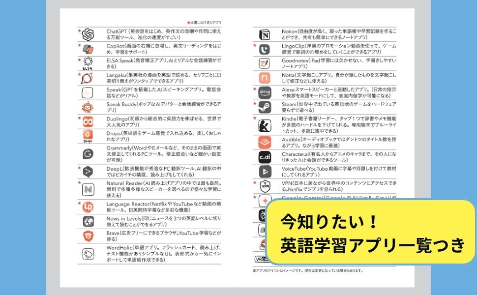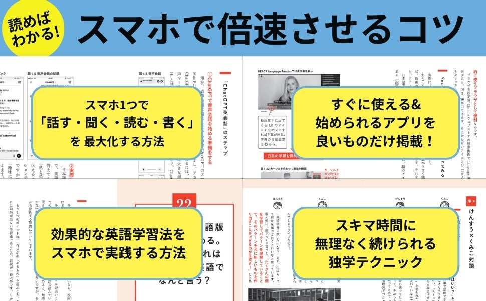 さらに、すぐに使える&始められるアプリや英語学習におすすめのYouTubeなど、今すぐ試したくなる情報をたっぷり掲載。「無料でここまでできるの!?」と驚くテクニックが満載です。