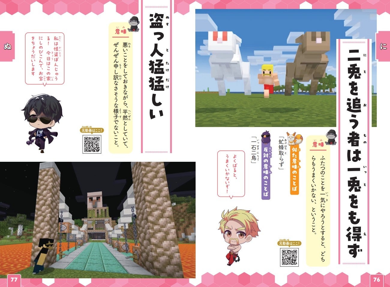 「マインクラフト」などのゲーム実況で子どもから大人まで幅広い人気を誇る5人組ゲーム実況グループ「ドズル社」の動画の名シーンと一緒に、楽しく「ことわざ」「四字熟語」を学べる書籍が発売されました。