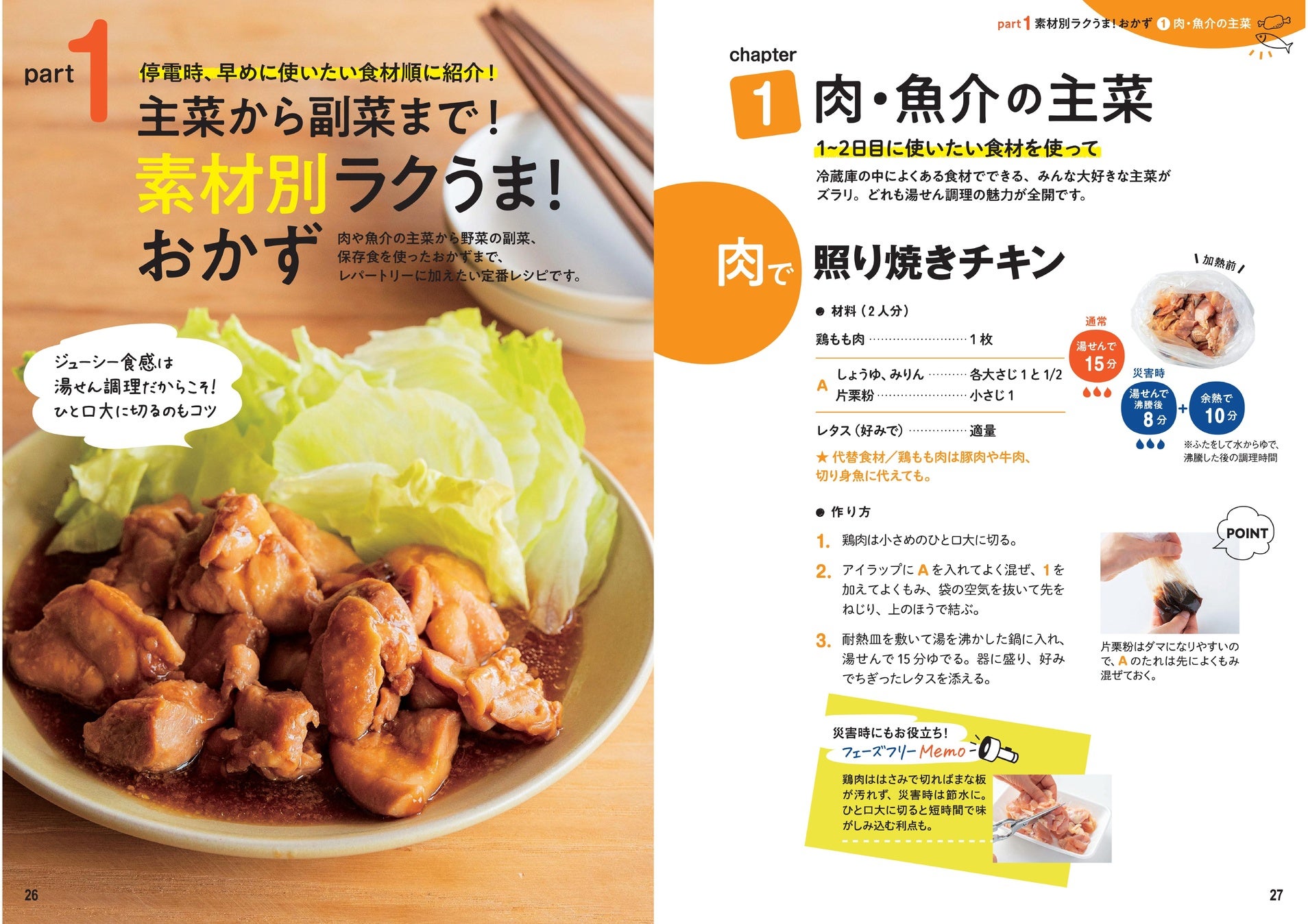 ●停電時に使うべき食材順にレシピを掲載。冷蔵庫の食材を上手に使う知識が身につく!