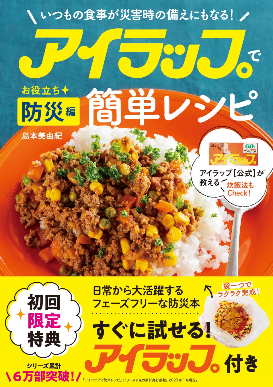 そんなアイラップをフル活用したレシピ本である『アイラップで簡単レシピ』(2024年5月発売、Gakken)は、累計発行部数5万部を突破(2025年1月時点)。このたび、「いつもの食事が災害時の備えにもなる」をコンセプトに、ふだんの料理にも災害時にも役立つレシピとアイデアをまとめた『アイラップで簡単レシピ お役立ち防災編』を発売します。
