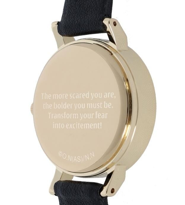 裏蓋にはオペラのセリフ「恐ろしい時ほど前に出ろ恐怖を興奮に変えるのです」の英訳を入れ込んであります。