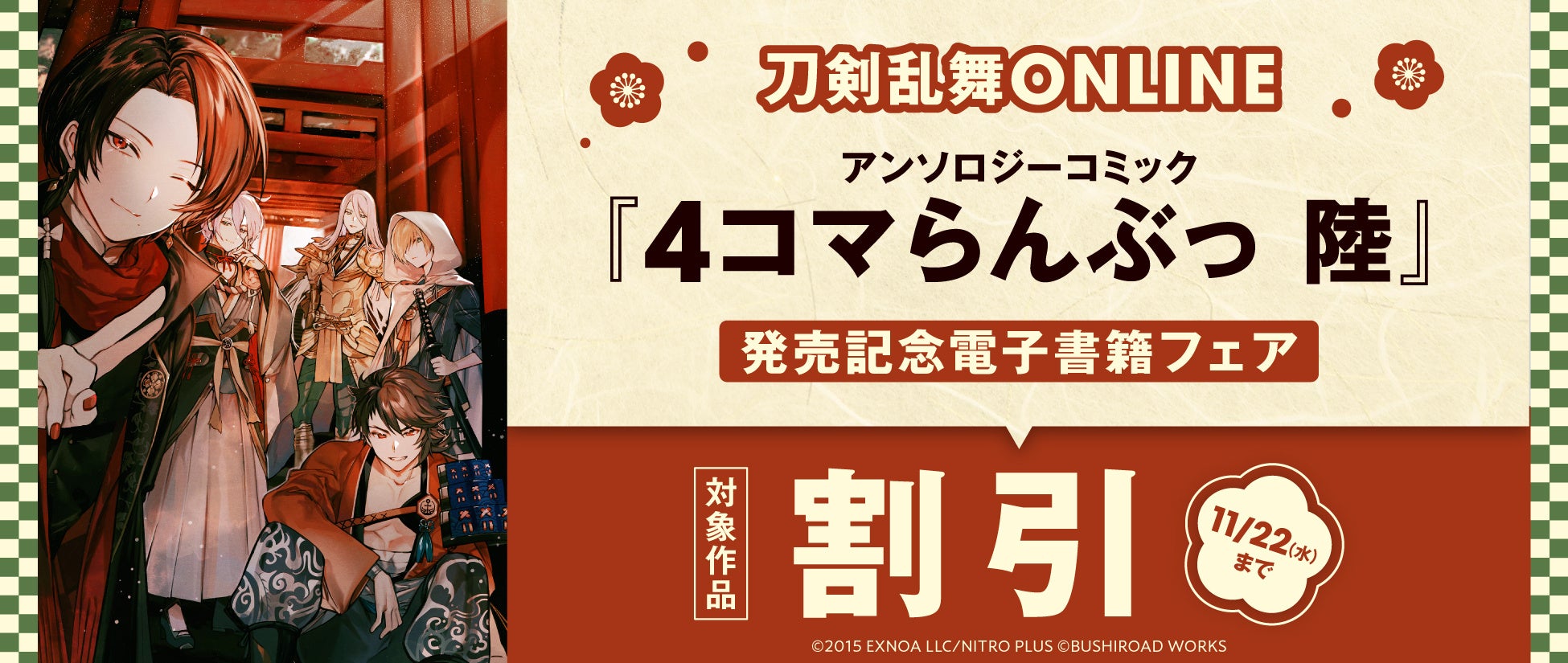 刀剣男士たちが織りなす4コマ漫画アンソロジー第6巻「刀剣乱舞ONLINE」アンソロジーコミック『4コマらんぶっ 陸』が本日11月9日(木)発売!!発売記念電子書籍フェアも開催中!