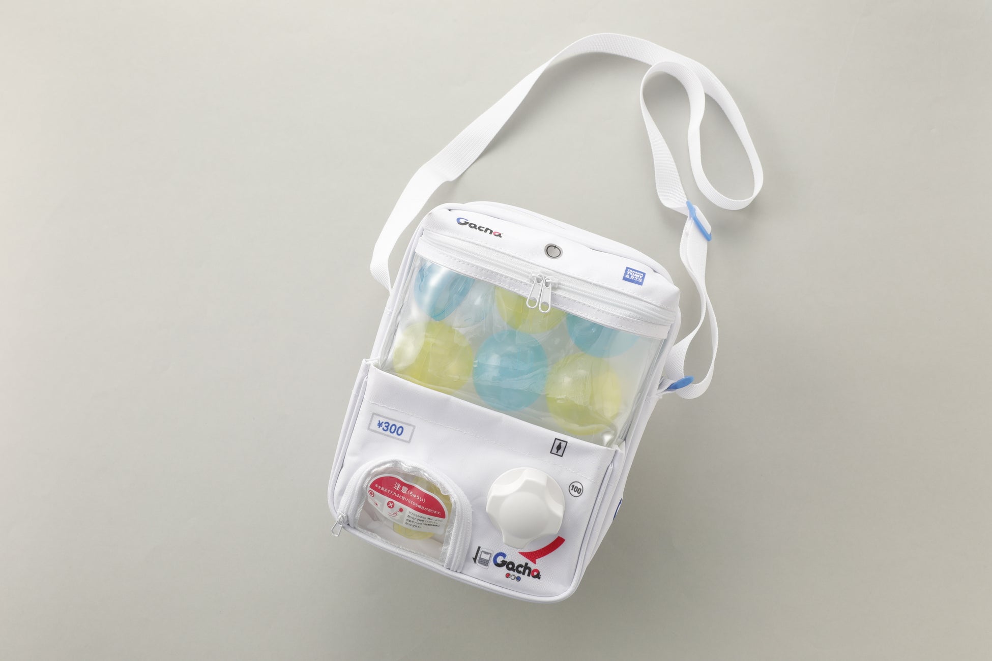 ガチャマシンを模してコンパクトにした、ショルダーバッグ付きのムックがついに発売! バッグにはカチカチと音を鳴らしながら回るハンドルが付くなど、再現度高し! ペットボトルやスマホも入り、普段使いに最適。