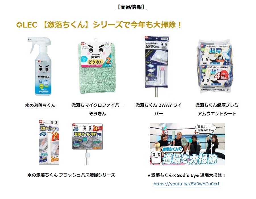 それに伴いまして、レック様の大人気商品【激落ちくん】シリーズと、STARDOMの大人気ユニット【God‘s Eye】がコラボした動画「激落ちくんで道場を大掃除!」もYouTubeにて公開致します。