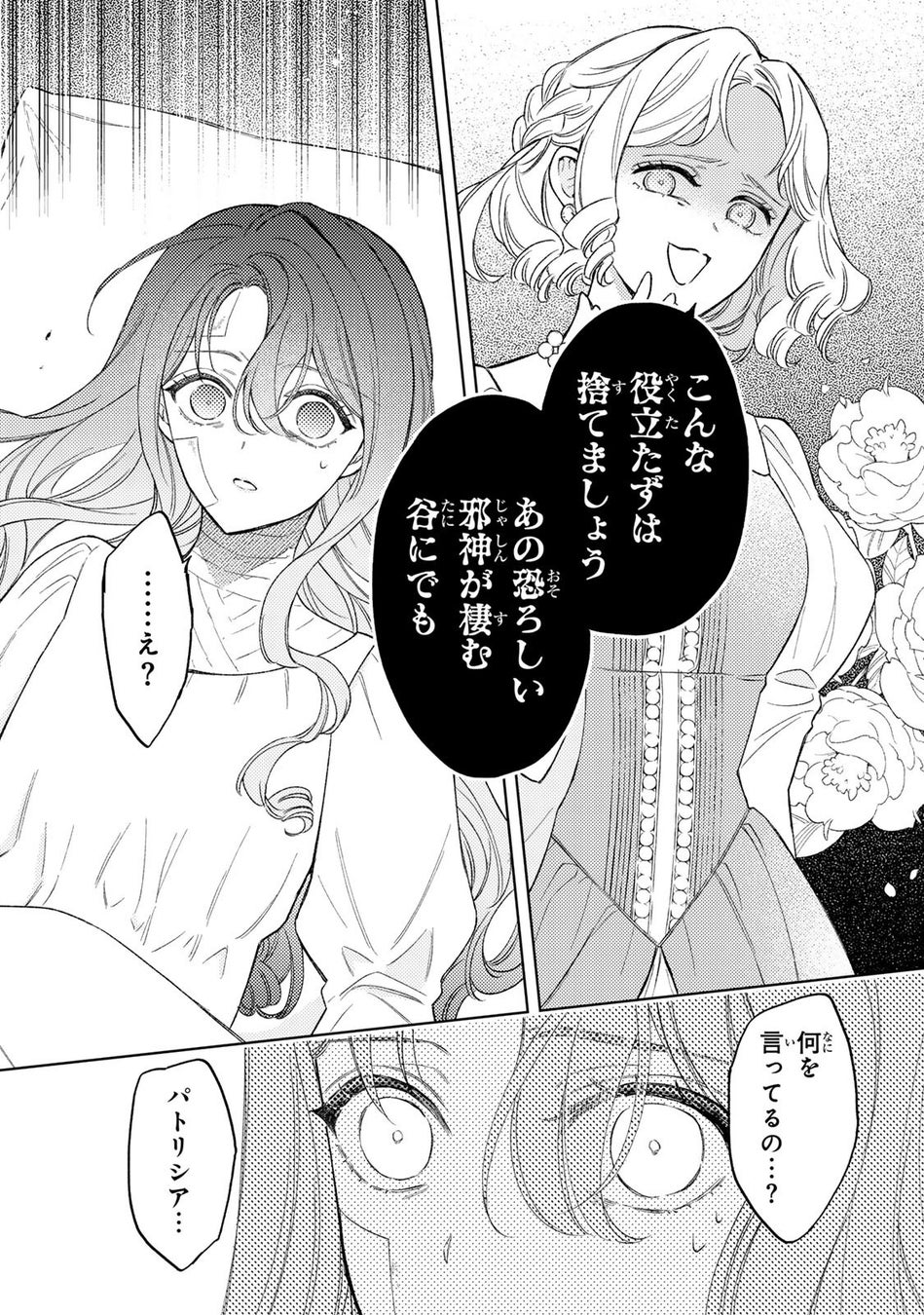 冷酷すぎる継母と義妹により、「邪神が住む」と噂される谷へと放り込まれてしまいます。
