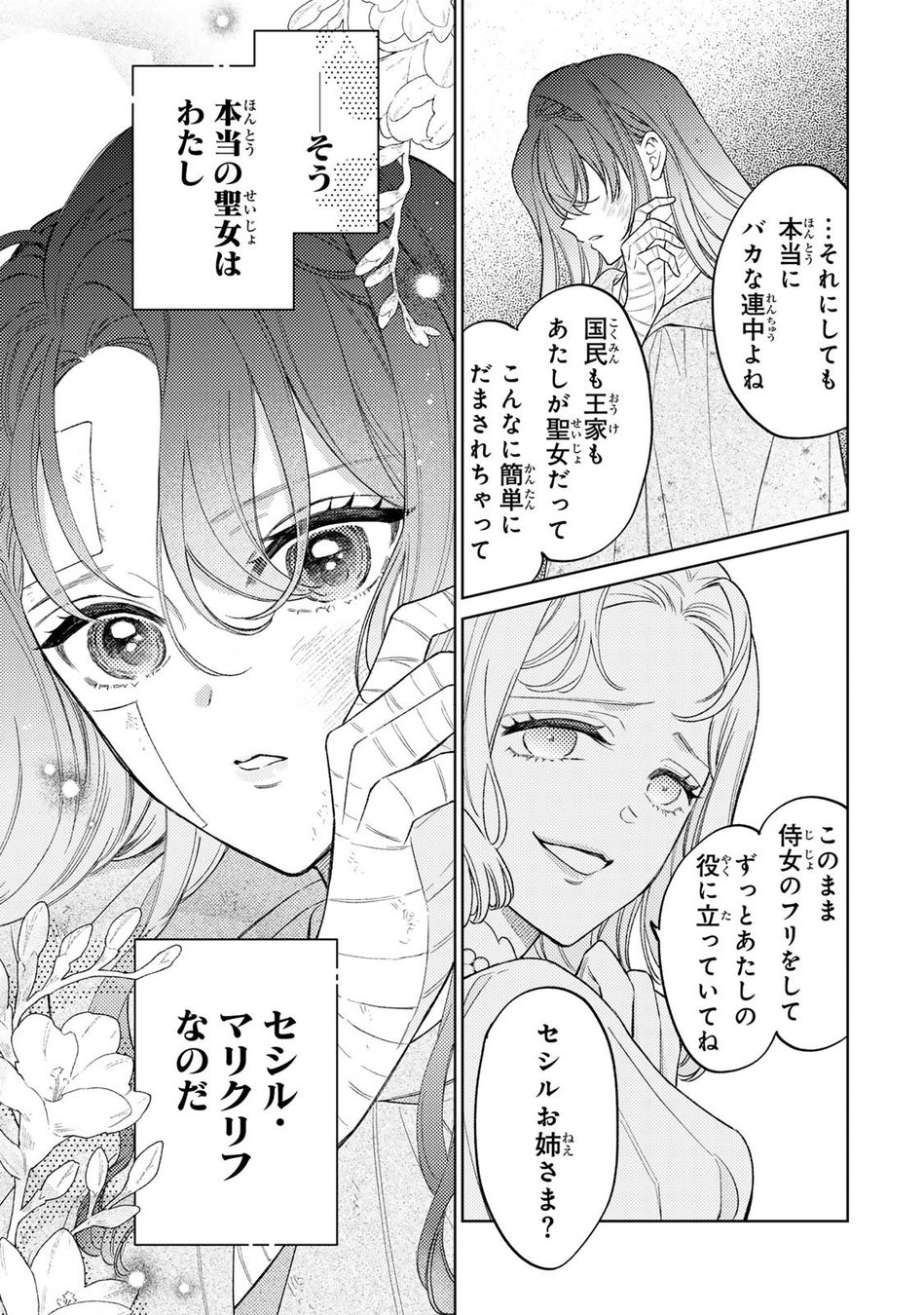 聖女になりすます義妹の代わりに、ひたすら祈りを捧げてきた本物の聖女・セシル。そんな彼女に待っていたのは、まさかの裏切り。
