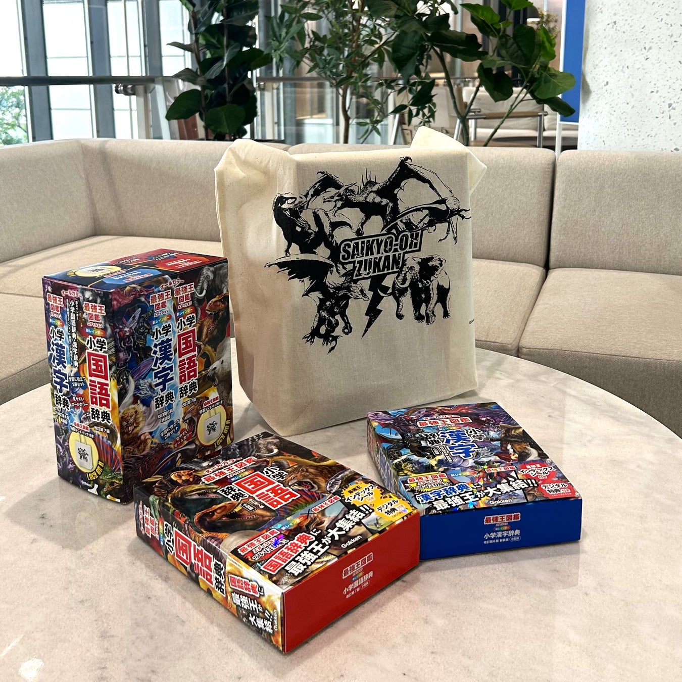 「最強王図鑑」のキャラがケースや本文に登場する『新レインボー小学国語辞典 最強王図鑑エディション』『新レインボー小学漢字辞典 最強王図鑑エディション』がついに発売。辞書バッグ付きのセットも要チェック!
