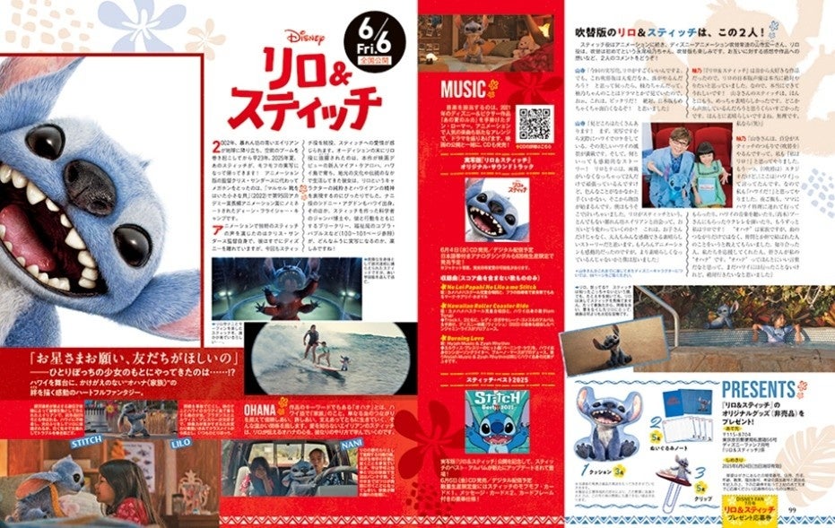 月刊「ディズニーファン」最新7月号の表紙は『リロ&スティッチ』。待望の実写版映画が6月6日(金)に公開されるのを記念して、特別ポスター4種をステッカーにしました。映画の紹介ページはもちろん、スティッチのイトコたちにフォーカスした特集や、ディズニーストアや全国のお店で発売予定のグッズ、東京ディズニーランド®でスティッチと楽しめるアトラクション紹介などなど、スティッチの話題が盛りだくさんです!