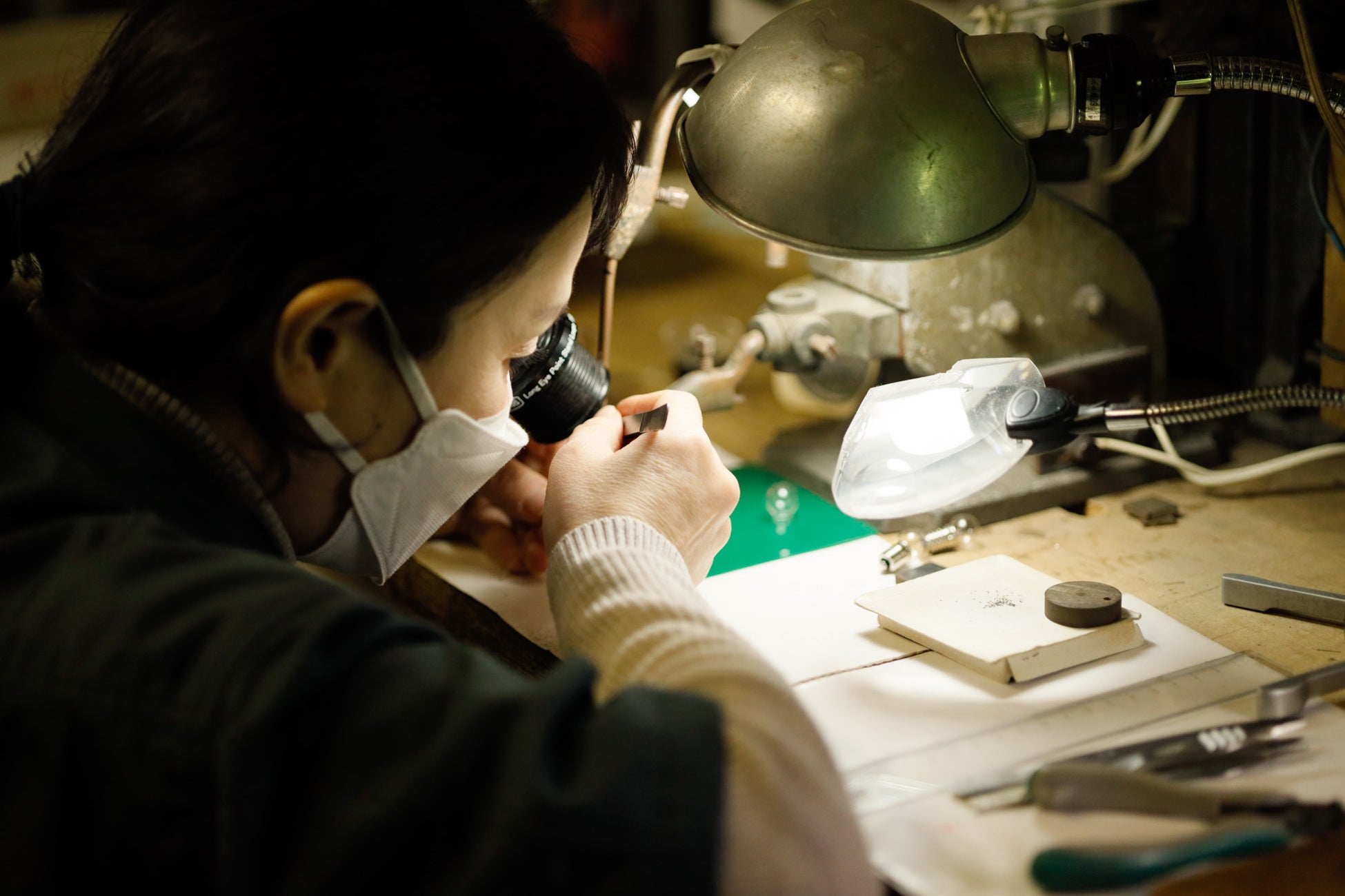 わずか0.55mmのフィラメントを持つ特注電球は、日本の電球職人がひとつひとつ手作りした希少な特注品。極小フィラメントの点光源によって投影される星は、限りなく小さな点像として表現され、本物の星空のような質感で空間を満たします。