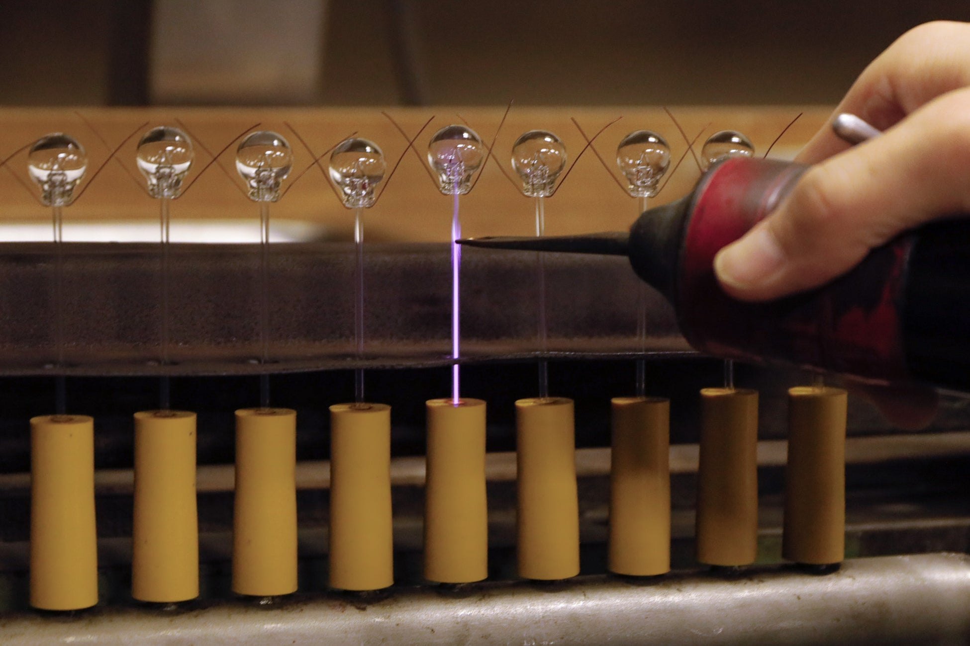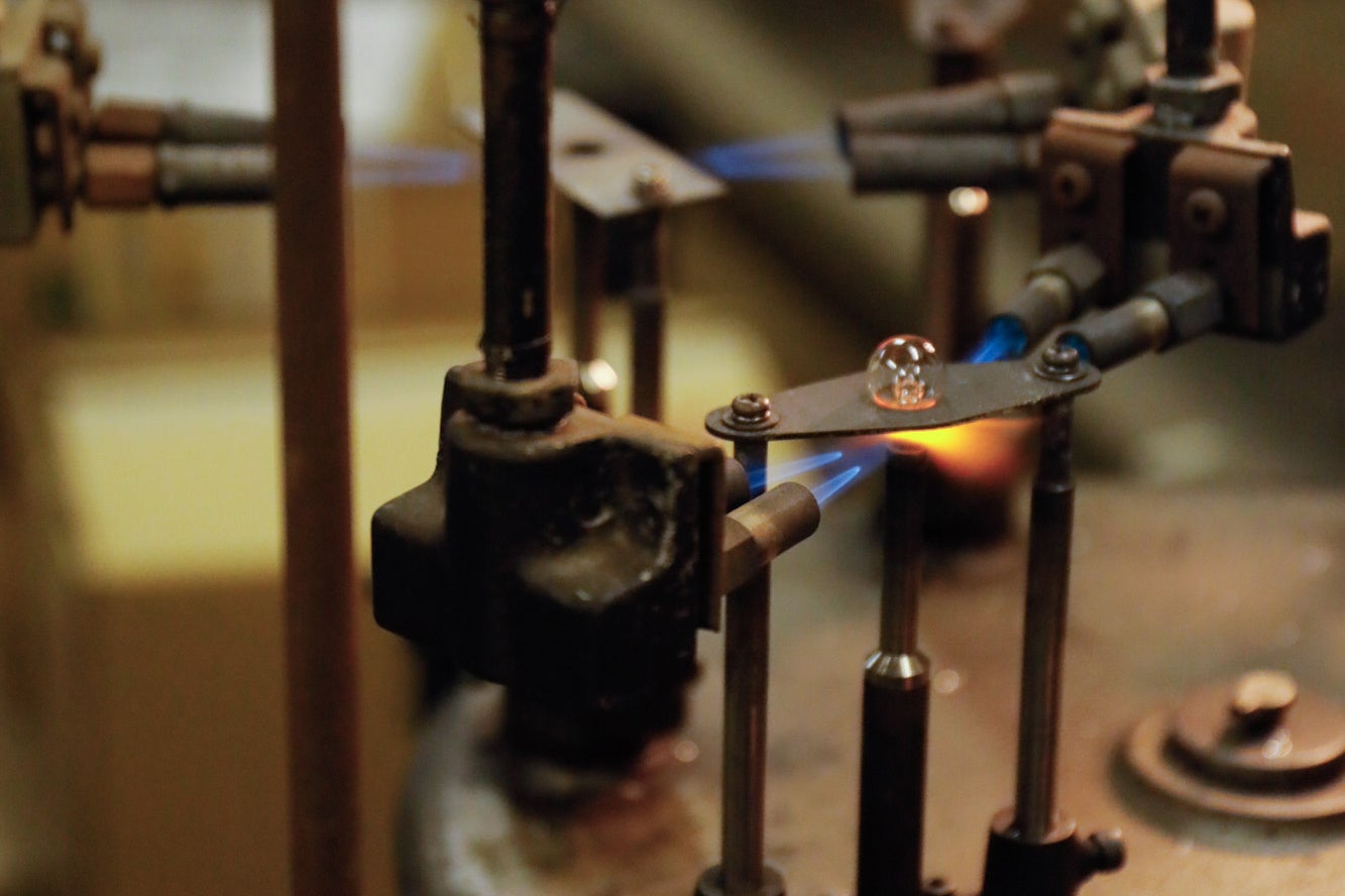 ▲高精度のプラネタリウム専用電球を職人がひとつひとつ手作りします。