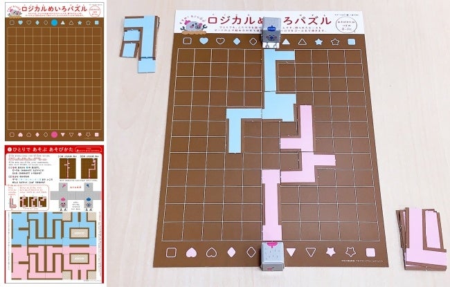 巻末には、「ロジカルめいろパズル」つき。限られたピースをボードの上で組み合わせて道を作り、「もぐらロボ」をゴールまで導きます。組み合わせるピースの向きや形を考えることで論理的思考力を鍛えます。遊ぶのは、1人でも2人でもOK。