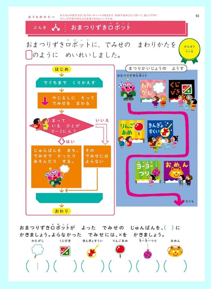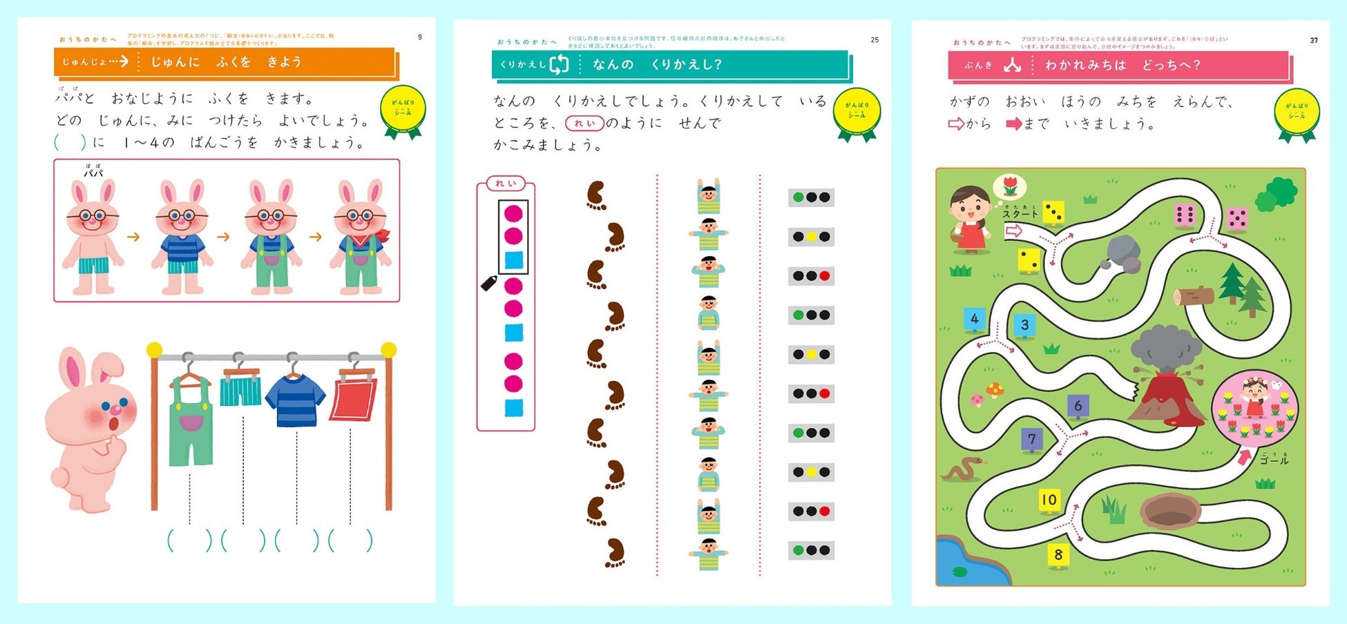 小学校から「プログラミング教育」(※)が必修化されたことを受け、子どもがきちんと理解し取り組めるか不安に感じている保護者の方が多いようです。そんな声におこたえし作成されたのが『プログラミングれんしゅうちょう 新装版』。PCやタブレットいらずで、おうちで楽しくプログラミングの考え方に親しめ、スムーズに小学校のプログラミング教育につなげていくことができます。「プログラミングを学ぶ理由」を親子で考えるきっかけにもぴったりです。