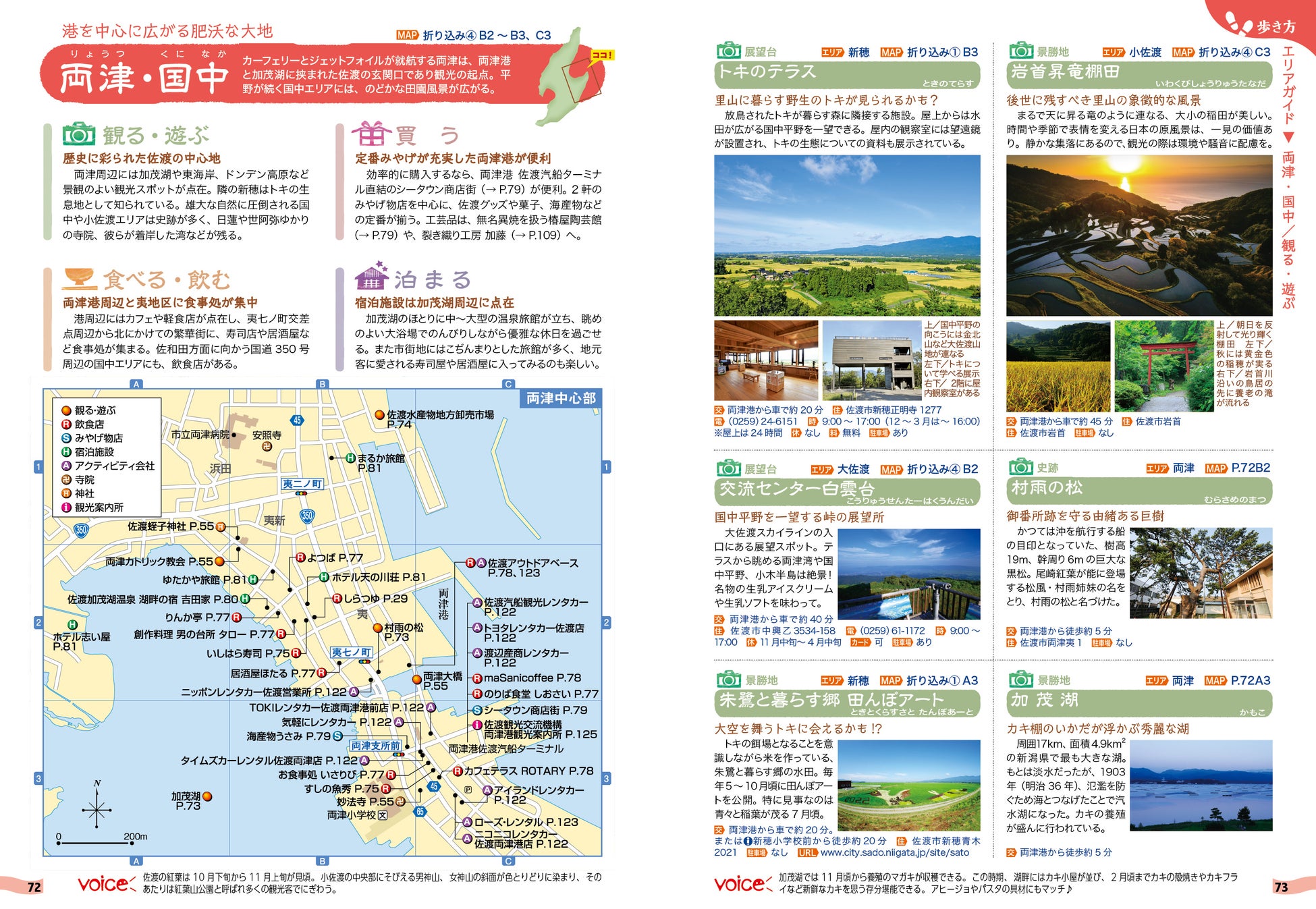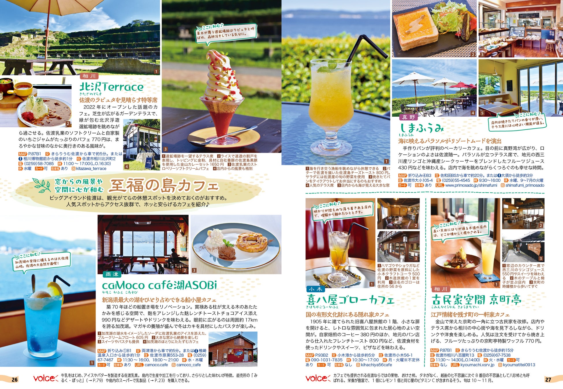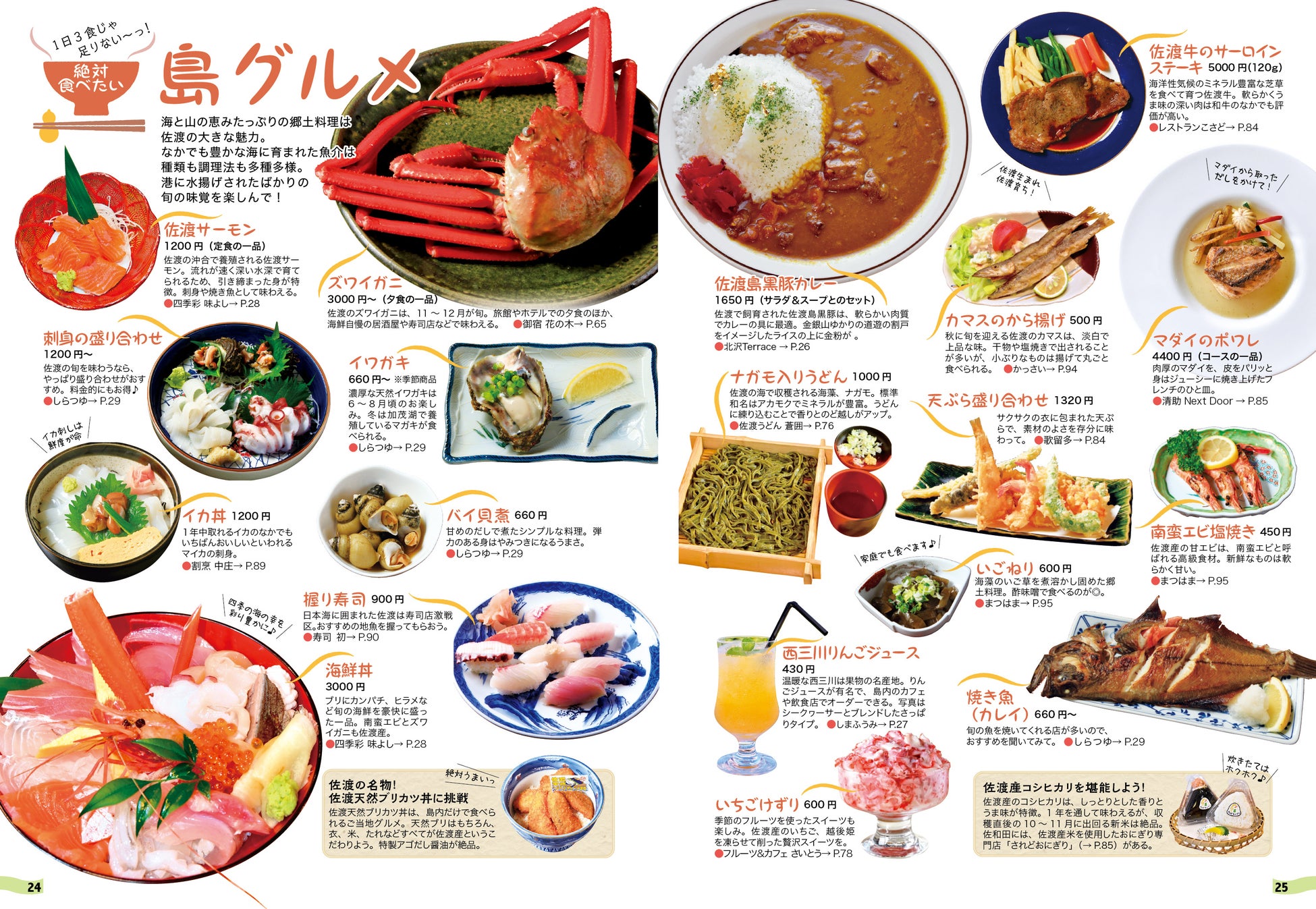 新鮮な海の幸や郷土料理も佐渡の大きな魅力。ブリやカニ、サザエ、牡蠣などの海鮮グルメから、酒造巡りで味わう地酒まで、島の味覚をとことん楽しめる情報をお届け。旅のおみやげ選びにも役立つ特集も収録しています。