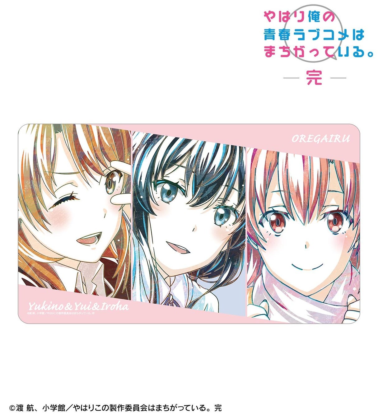 雪ノ下雪乃、由比ヶ浜結衣、一色いろはのイラストを新たなタッチで魅力的に表現し、マルチデスクマットに仕上げました。