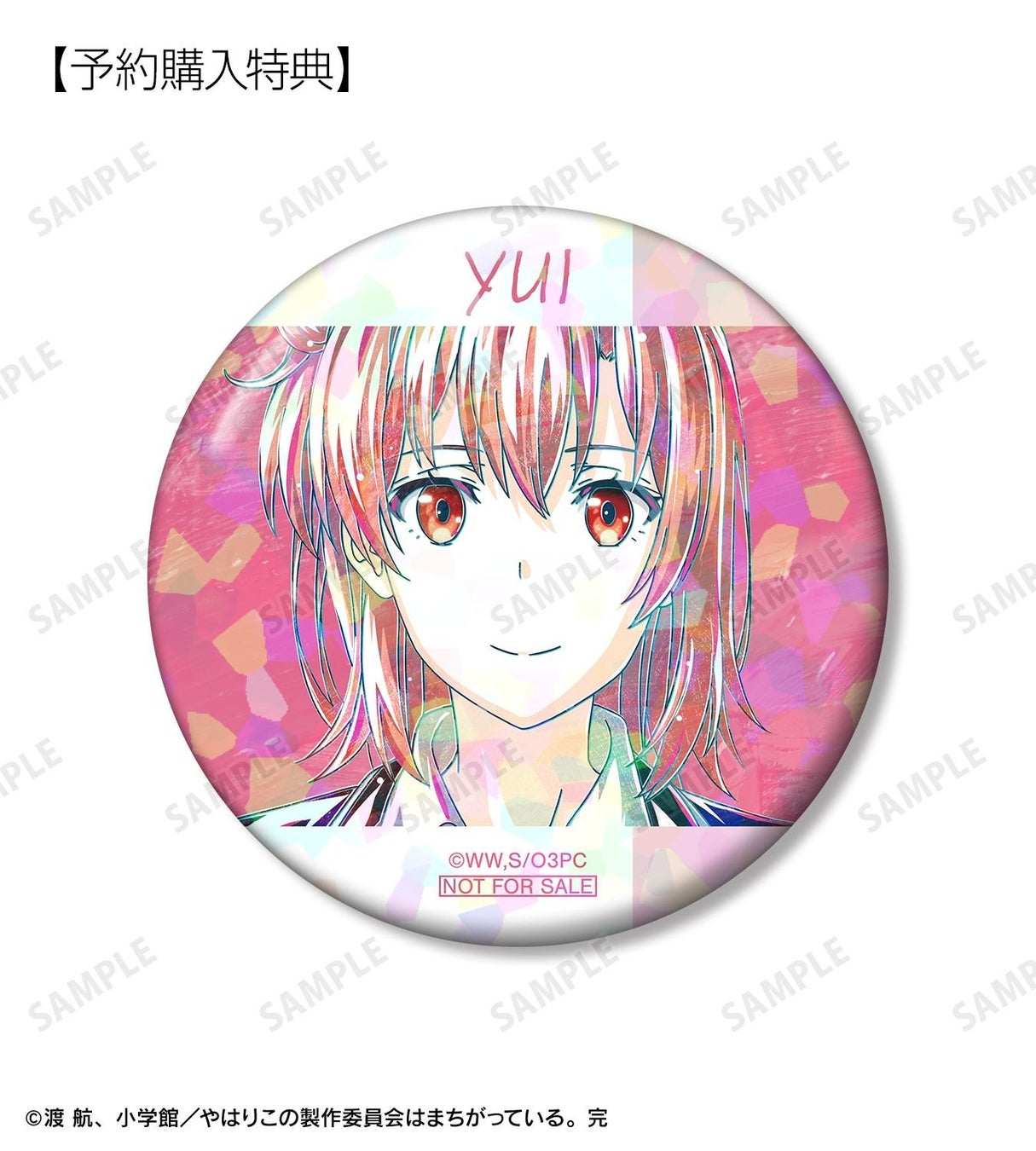 雪ノ下雪乃、由比ヶ浜結衣、一色いろは、比企谷小町、平塚 静のイラストを新たなタッチで魅力的に表現し、グリッター加工を施した缶バッジに仕上げました。