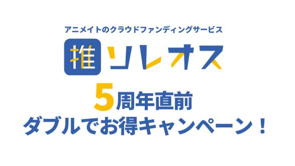 アニメイトのクラウドファンディングサービス「ソレオス」、5周年直前記念!プロジェクト出品者向け「ダブルでお得キャンペーン」を実施中