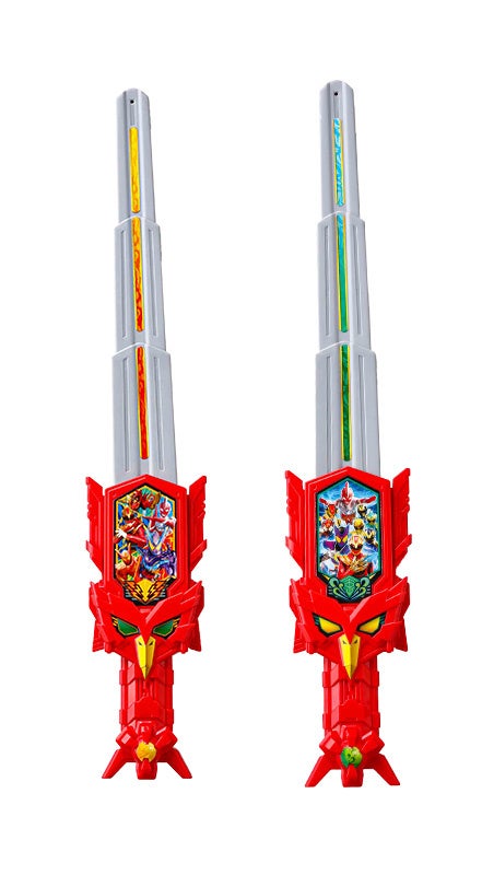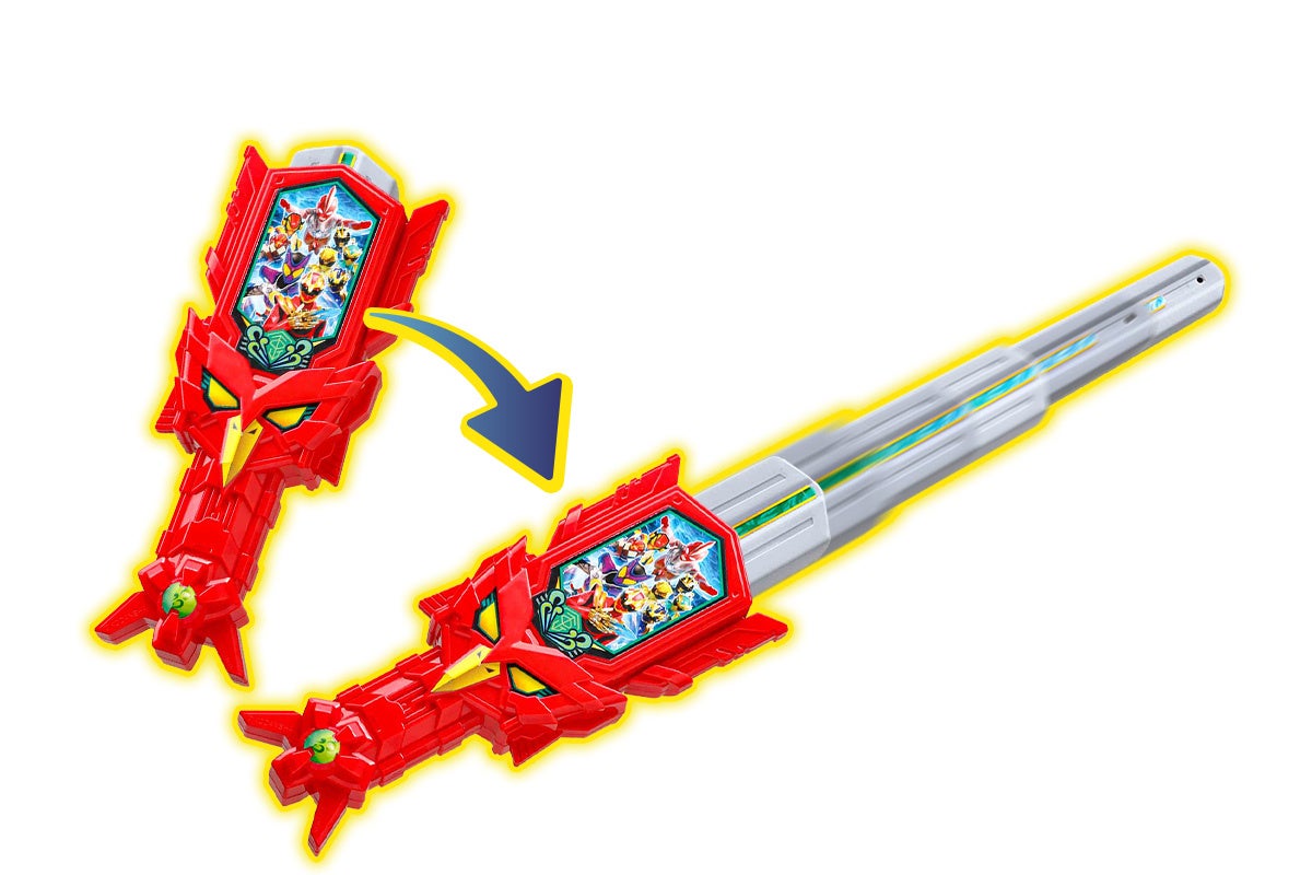 スライドギミックで伸縮自在! 振ってのびるイーグル剣で収納時はコンパクトでも、遊びは大胆に! 迫力満点のサイズ感を実現しています。