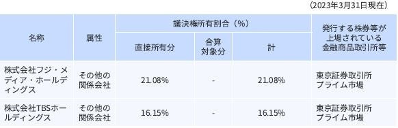 当社のその他の関係会社である株式会社フジ・メディア・ホールディングス及び株式会社TBSホールディングスについて、支配株主等に関する事項は、以下のとおりとなりますので、お知らせいたします。