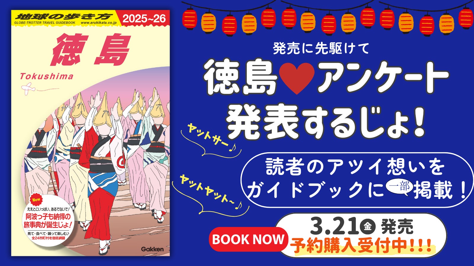 株式会社 学研ホールディングス(東京・品川/代表取締役社長:宮原博昭)のグループ会社、株式会社 地球の歩き方(東京・品川/代表取締役社長:新井邦弘)は、2025年2月27日(木)に『地球の歩き方 J22 徳島』(2025年3月21日発売予定)の読者アンケートの結果を公開。予約購入も受け付け中です。