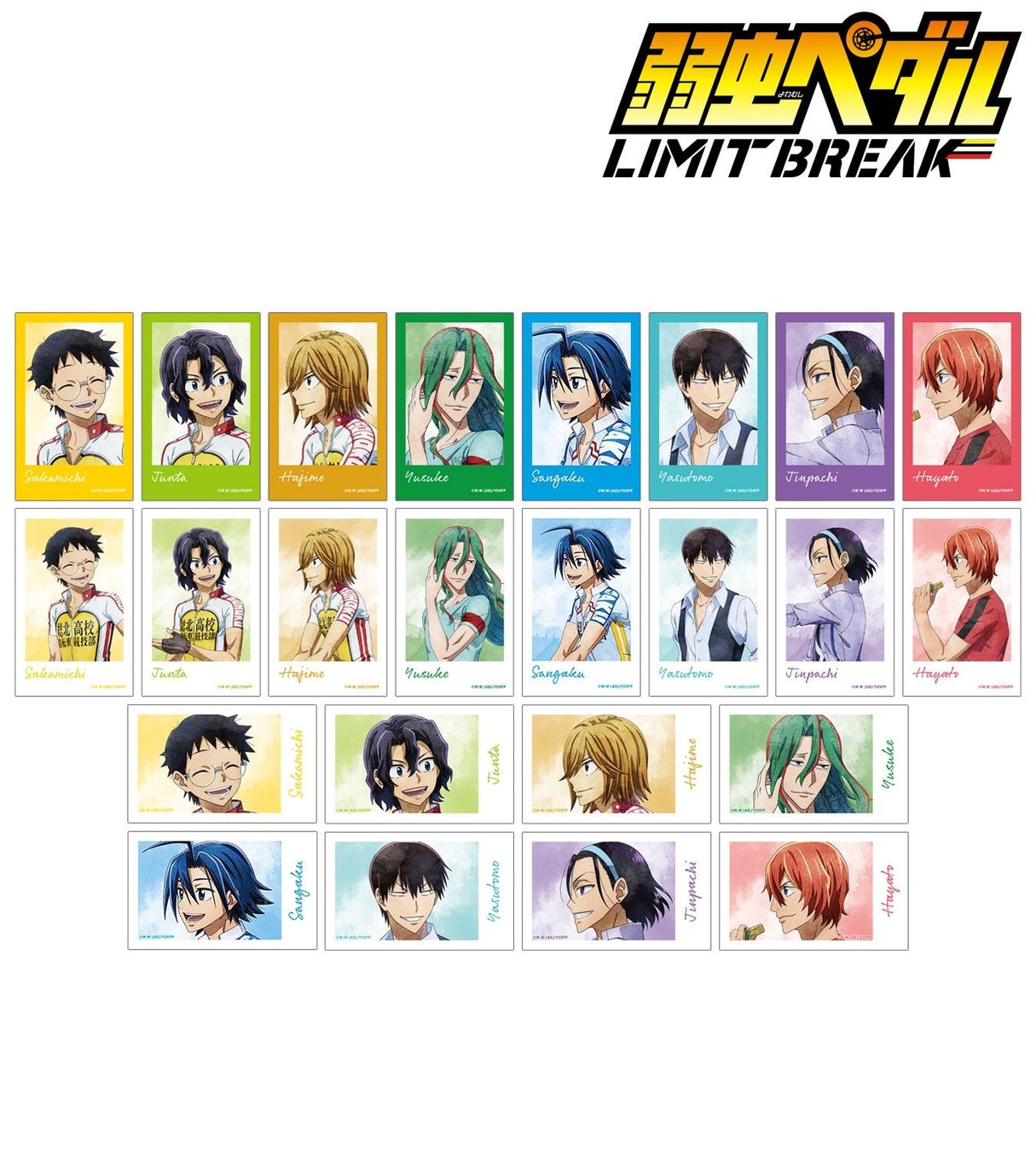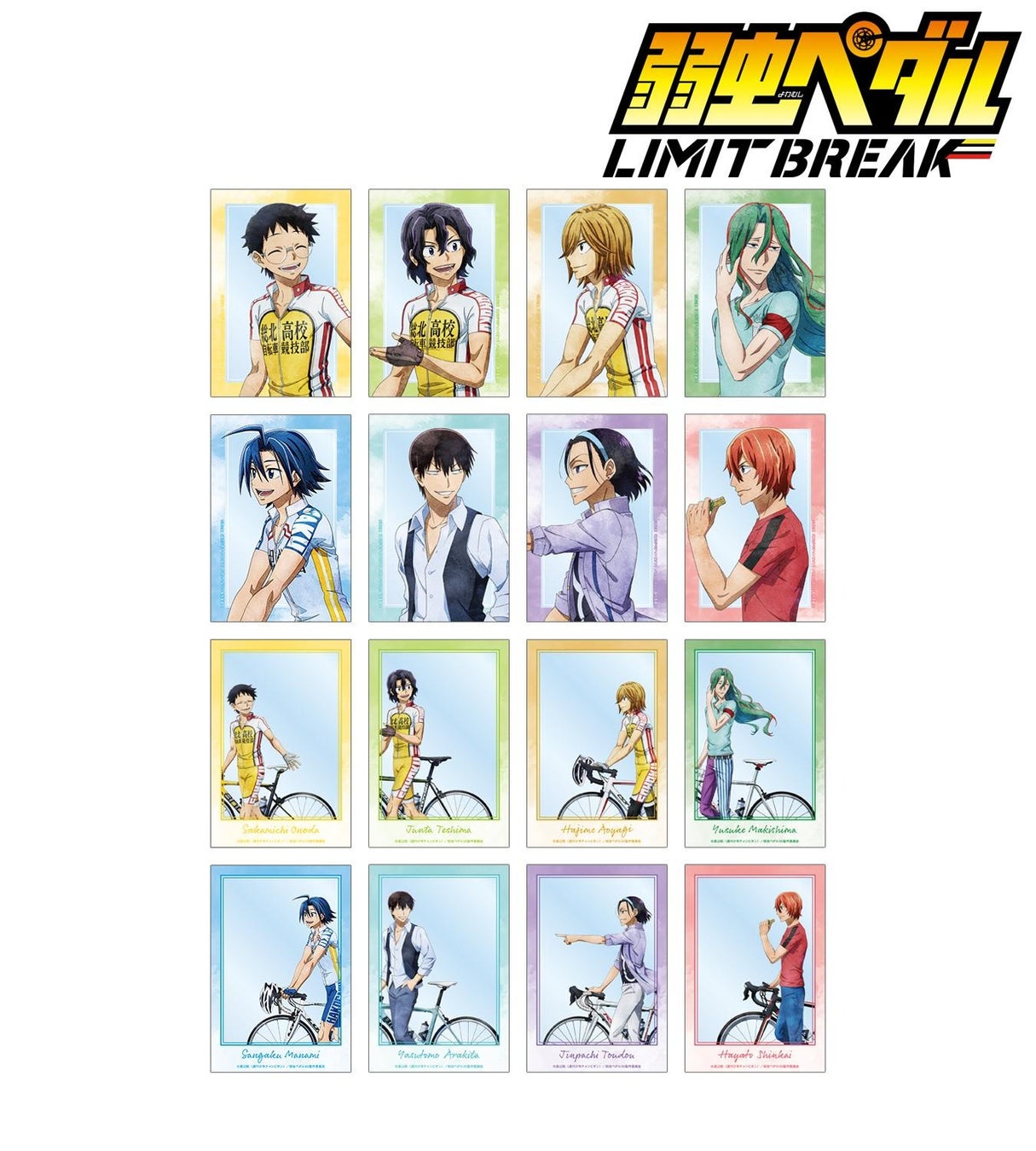 種類 :全8種(小野田 坂道、手嶋 純太、青八木 一、巻島 裕介、真波 山岳、荒北 靖友、東堂 尽八、新開 隼人)