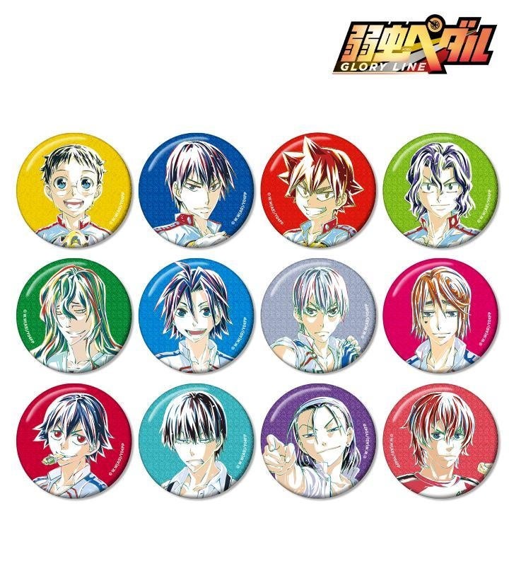 小野田 坂道、今泉 俊輔、鳴子 章吉、手嶋 純太、巻島 裕介、真波 山岳、黒田 雪成、葦木場 拓斗、新開 悠人、荒北 靖友、東堂 尽八、新開 隼人のイラストを新たなタッチで魅力的に表現し、グリッター加工を施した缶バッジに仕上げました。