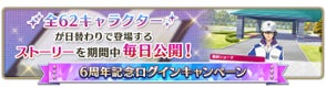 日替わりで全62キャラクターが登場するストーリーを毎日お届けする「6周年記念ログインキャンペーン」を開催します!