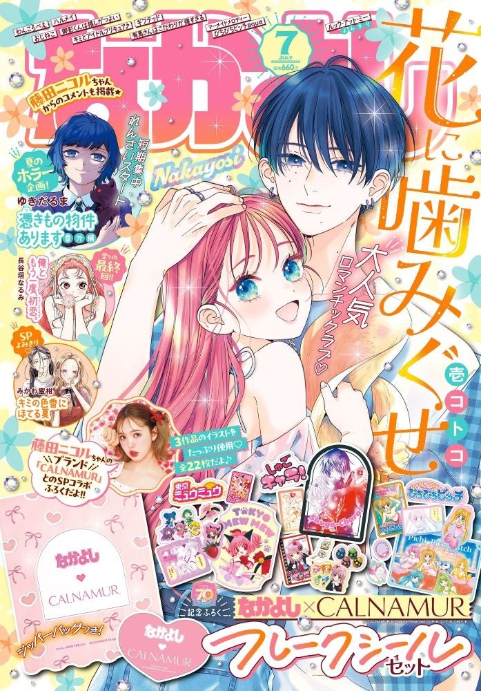 6月3日(火)発売のなかよし7月号は藤田ニコルさんのブランド「CALNAMUR」×なかよしのSPコラボフレークシールセットがふろくに登場!SP読みきりも満載で大充実の「夏のときめき」号♪