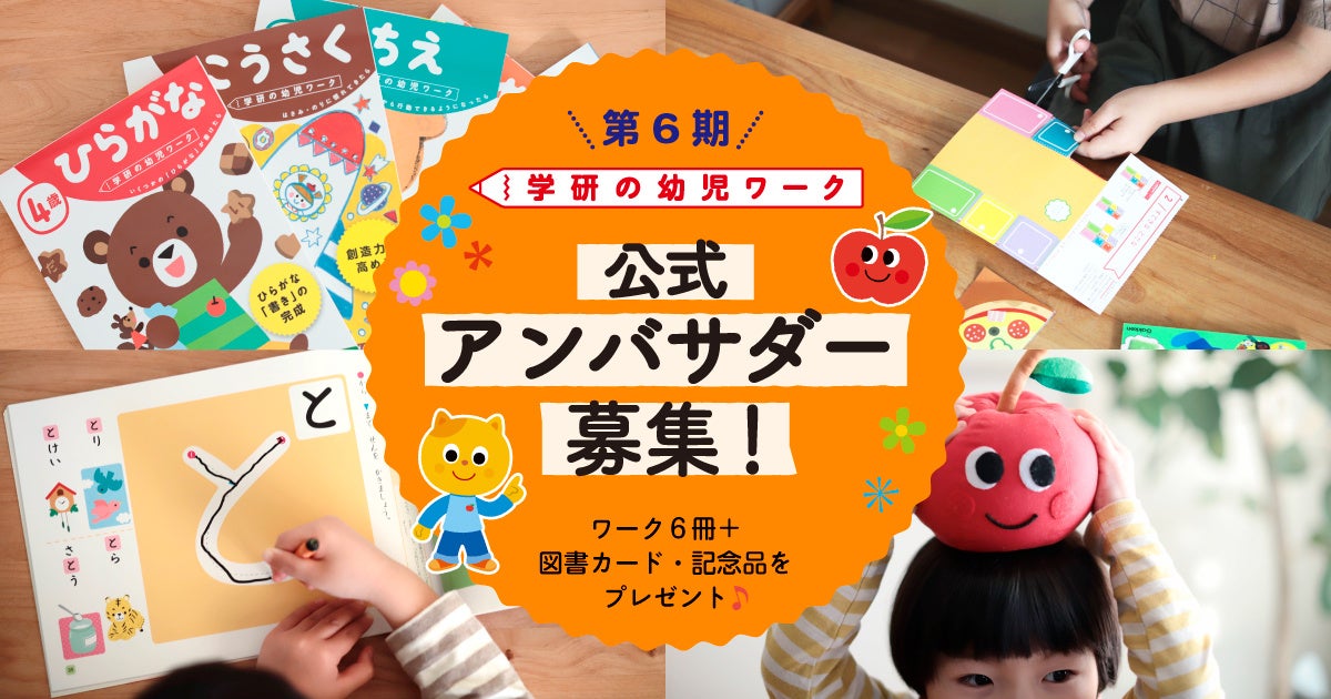 『学研の幼児ワーク』を一緒に盛り上げてくださる、公式アンバサダーの第6期メンバーを大募集します! お子さんの年齢にあった人気のワーク6冊をプレゼント!
