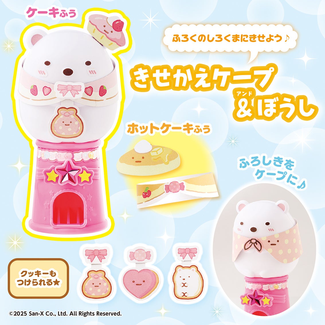 「すみっコガチャ」のしろくまに、「きせかえケープ&ぼうし」できせかえ遊びをすることも。