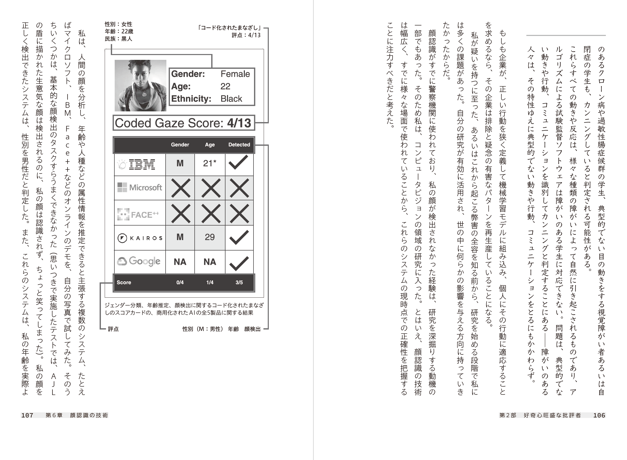 本書は、その発火点となった元MITメディアラボ研究者ジョイ・ブオラムウィニ博士が、「コード化されたまなざし(coded gaze)」と名づけたAIの不正義に、研究者として、当事者として、そして一人の市民として立ち向かった軌跡を描く迫真の自伝的ノンフィクションです。