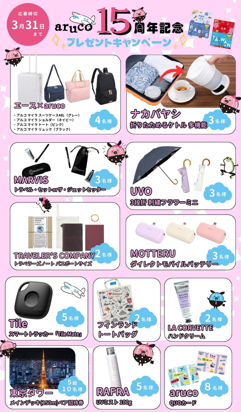 ■「aruco」15周年記念 旅好き読者のみなさまへ「ありがとう」キャンペーンを実施!