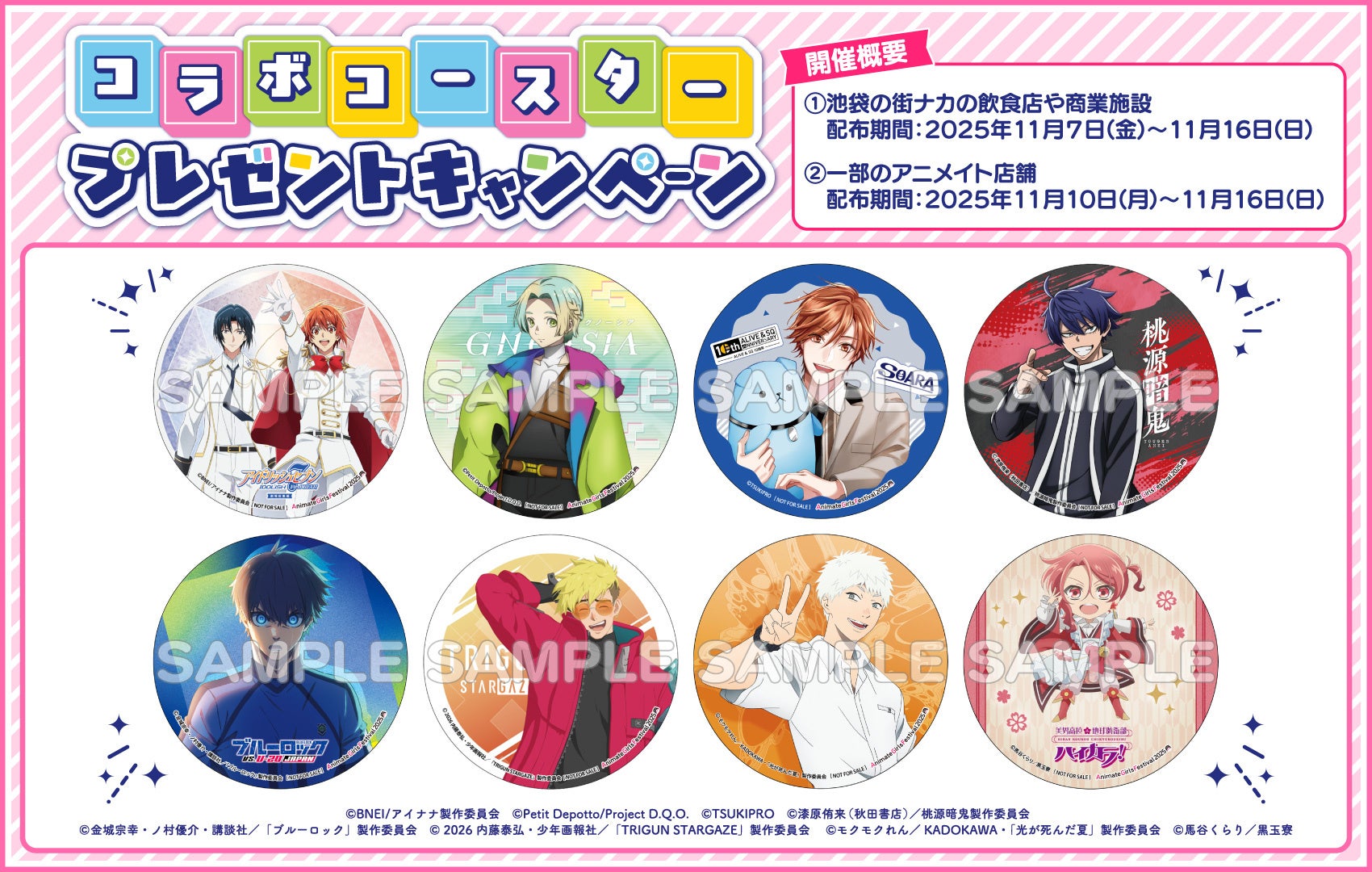 今回は、『アイドリッシュセブン First BEAT! 劇場総集編』や『グノーシア』、『ツキプロ ALIVE&SQ 10周年記念プロジェクト』など全8作品とコラボする「コラボコースタープレゼントキャンペーン」のコースターデザインや、『味の素AGF株式会社』コラボ企画の続報として本日10月1日より開始となるSNSキャンペーン情報が新たに公開となりました。