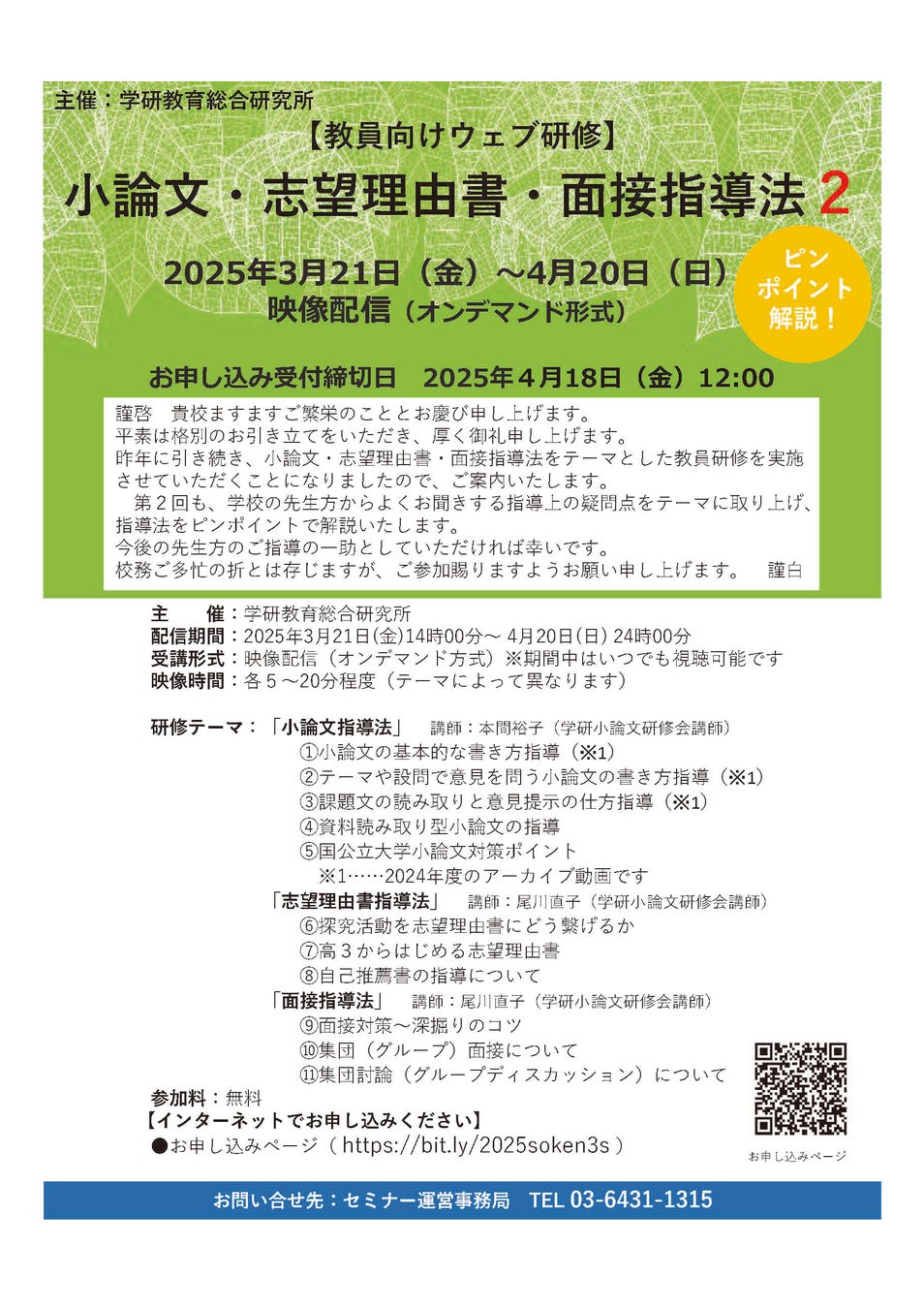 【お問い合わせ先】セミナー運営事務局 TEL:03-6431-1315