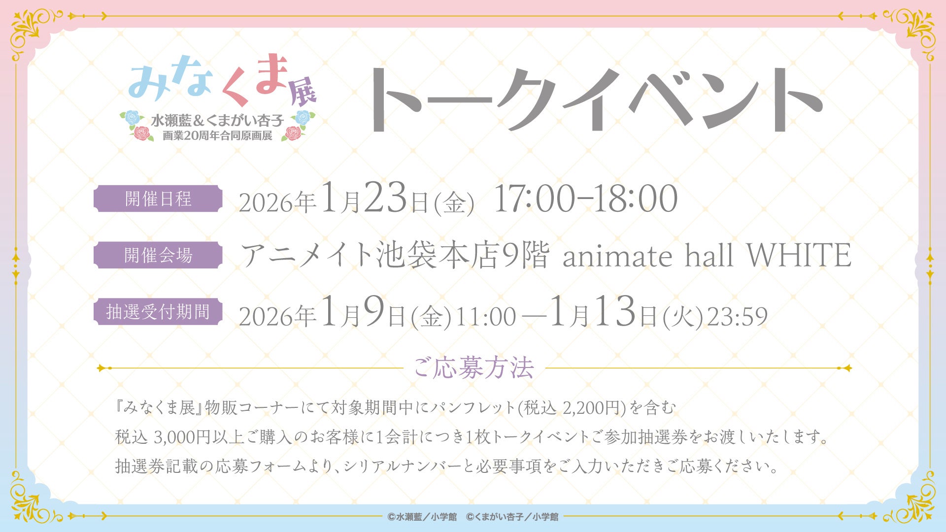 原画展の開催を記念し、水瀬藍先生・くまがい杏子先生によるトークイベントを開催いたします!