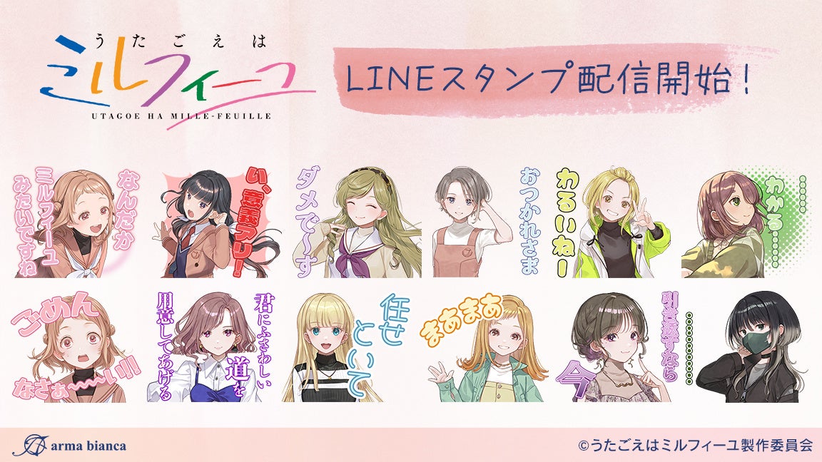 株式会社アルマビアンカ(本社:東京都中野区、代表取締役:坂井智成)は「うたごえはミルフィーユ」のLINEスタンプ配信を【3月24日(月)】より開始いたしました。
