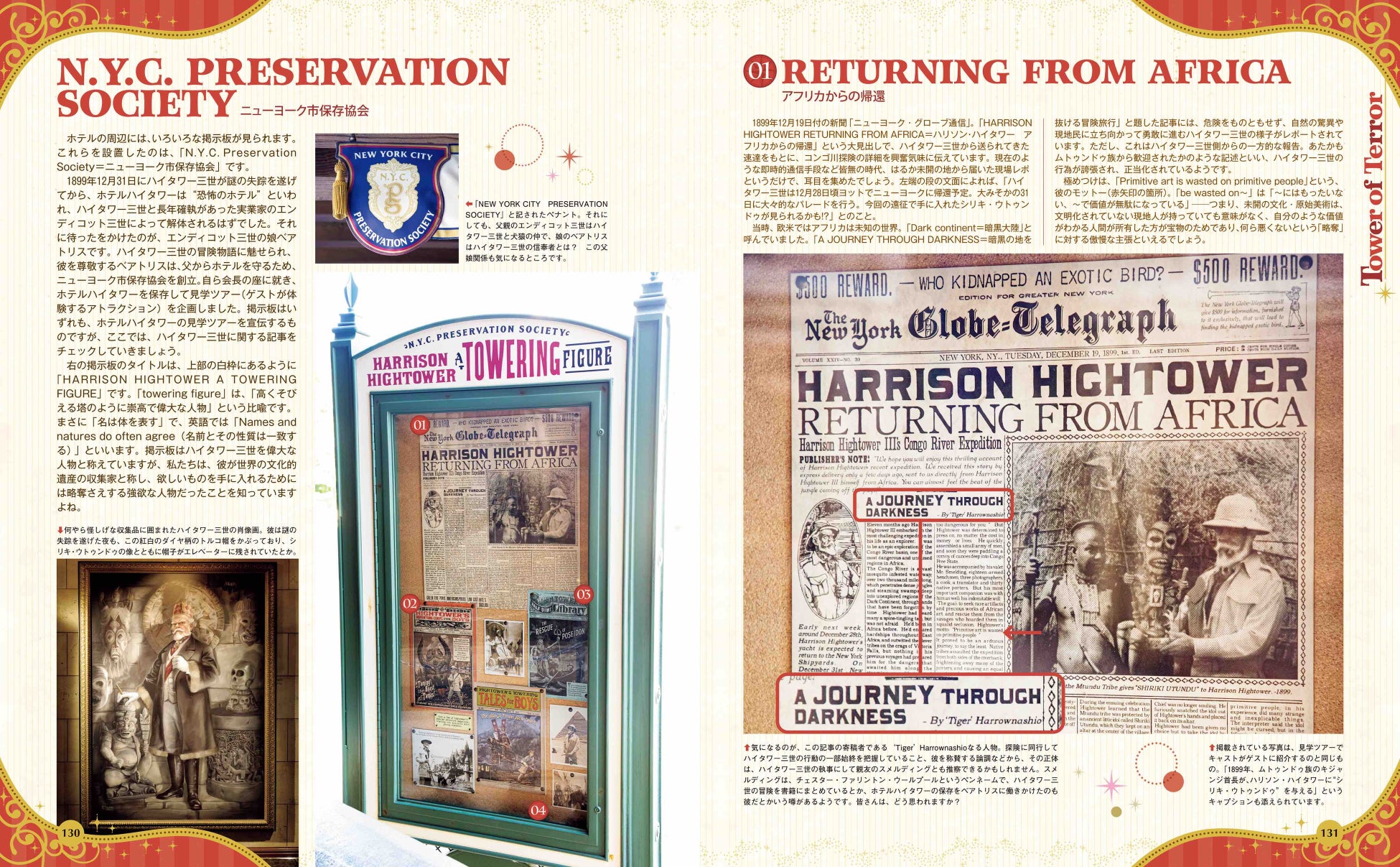 まず目を引いたのがタランチュラのクリームスープ、そしてラクダの足のボイル。料理の仕上がりや味を想像するのもためらわれるメニューですが、ホテルのグランドオープニングで供されたディナーと同じもの。これがハイタワー三世ご自慢の料理だったのでしょう。他にも刺激的な珍味、圧感のテイストを感じるメニューが並んでいます。ぜひご確認ください。