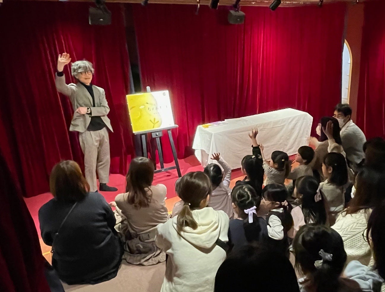 当日、11:00からと14:00からの2回、「絵と言葉のライブラリー ミッカ」のシアター内にて、いりやまさとし先生ご自身による絵本の読み聞かせとクイズ大会を開催しました。