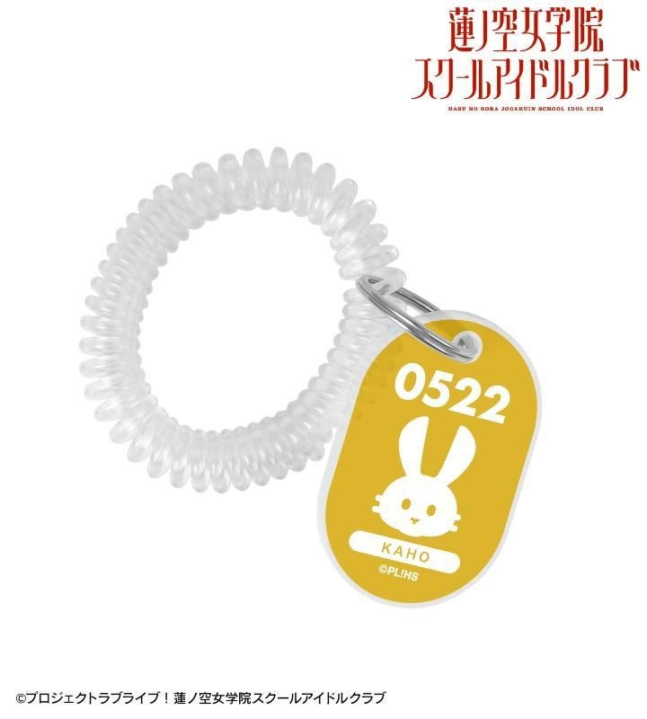 日野下 花帆、村野 さやか、乙宗 梢、夕霧 綴理、大沢 瑠璃乃、藤島 慈、百生 吟子、徒町 小鈴、安養寺 姫芽のメンバーアイコン、誕生日、メンバーの名前、校章、作品ロゴを、ロッカーのキータグをイメージしたアクリルキーホルダーに仕上げました。
