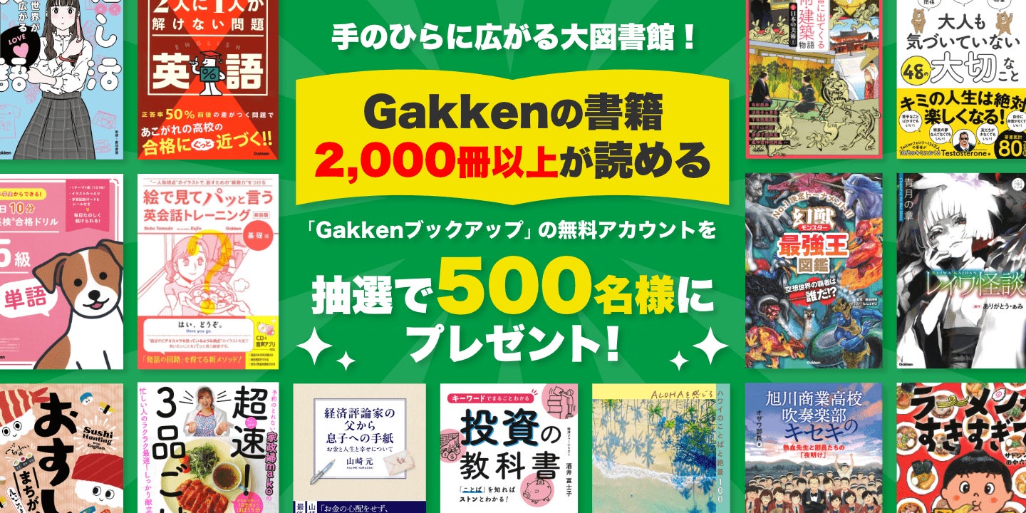 抽選で500名様に学研グループの電子書籍2,000冊以上が読み放題のサービス「Gakkenブックアップ」が約2か月間無料で利用できるアカウントをプレゼント!