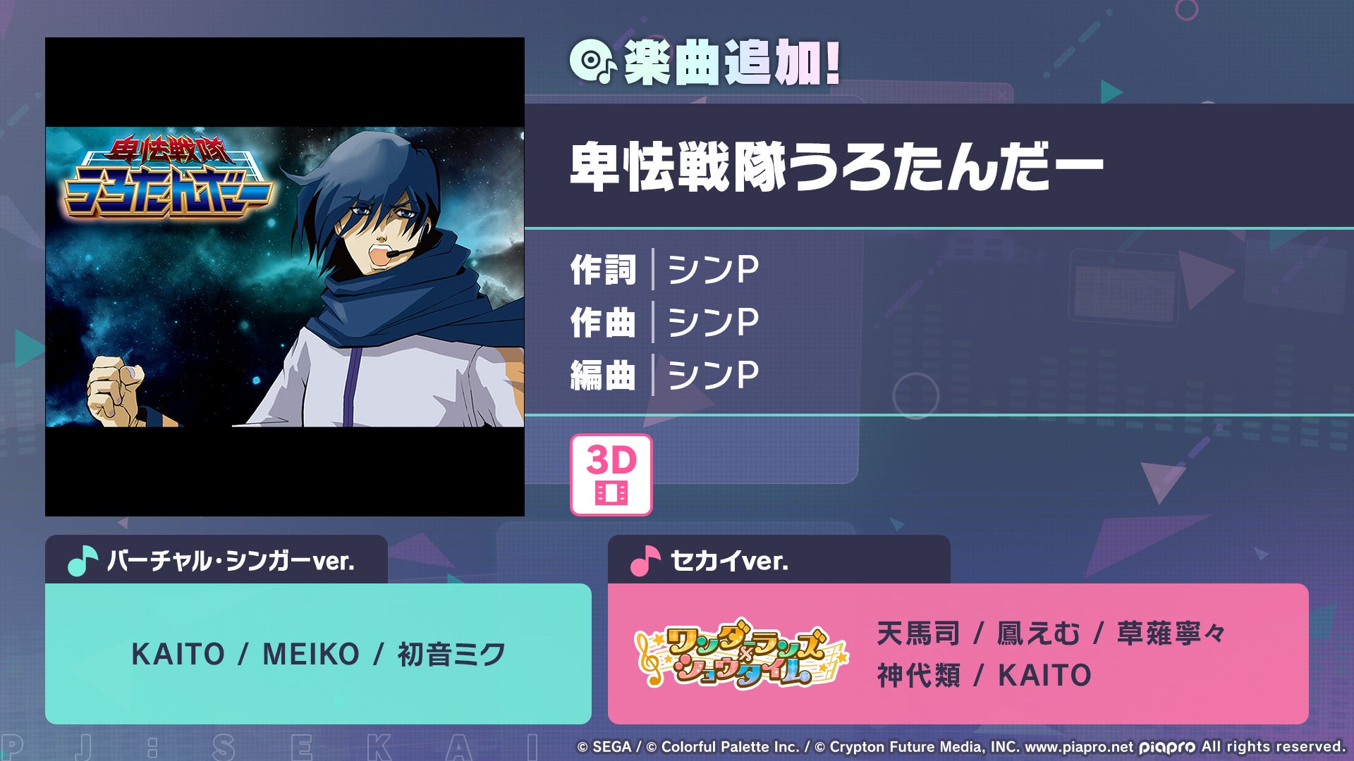 著作権表記:© SEGA / © Colorful Palette Inc. / © Crypton Future Media, INC. www.piapro.net All rights reserved.