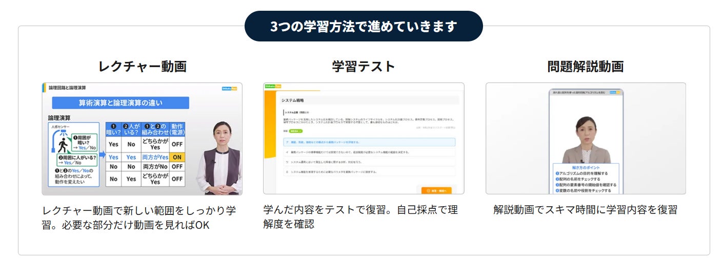 本サービスは、エンジニアの新人教育や即戦力化、従業員のDX教育等を目的としたオンライン動画教材を提供しています。ITパスポートや基本情報技術者、AWS Solution Architects AssociateなどのIT資格を活用したカリキュラムを通じて、ITの基礎・応用スキルを身につけるための講座を準備しております。