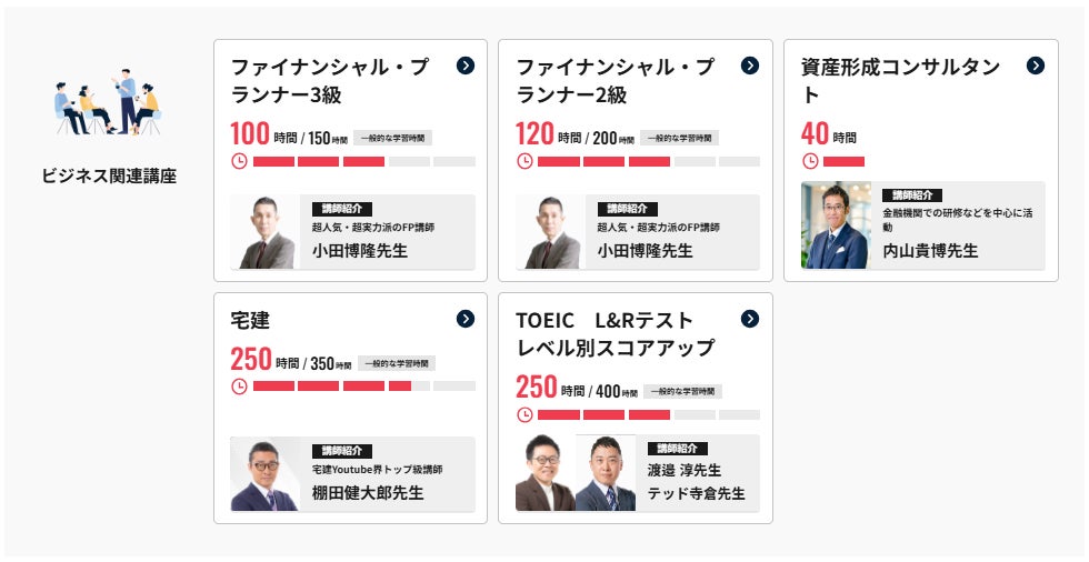 ファイナンシャル・プランナー3級 / ファイナンシャル・プランナー2級 / 資産形成コンサルタント / 宅建 / TOEIC L&Rテスト レベル別スコアアップ