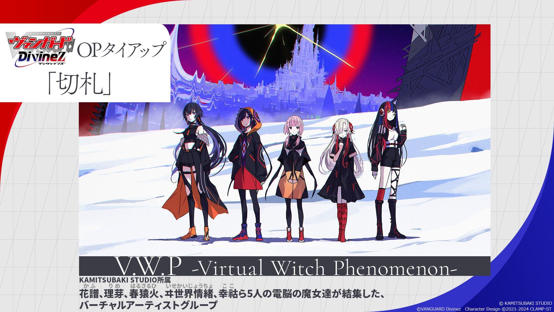 2024年1月より放送スタートのTVアニメ新シリーズ「カードファイト!! ヴァンガード Divinez」本作の最新情報が解禁された「カードファイト!! ヴァンガード Divinez 制作発表会」にてV.W.Pとのタイアップが発表された。制作発表会内ではV.W.Pメンバーからのコメント動画も公開された!