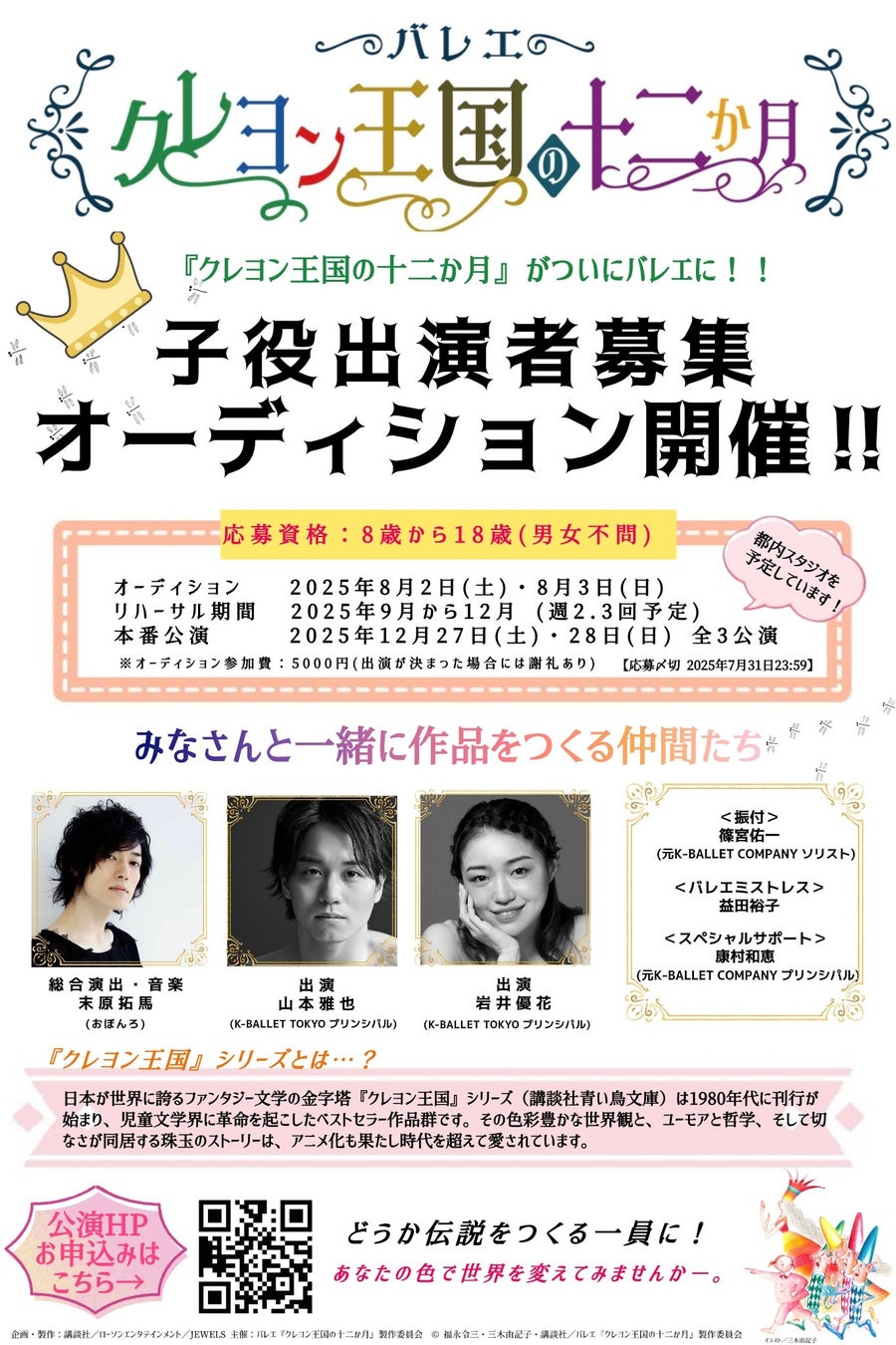 K-BALLET TOKYO山本雅也と岩井優花が出演!日本発新作バレエ『クレヨン王国の十二か月』が2025年12月に公演決定!