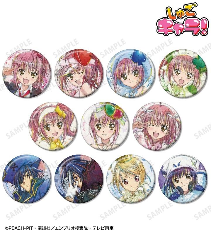 日奈森あむ、アミュレットハート、アミュレットスペード、アミュレットクローバー、アミュレットダイヤ、アミュレットフォーチュン、アミュレットエンジェル、セブンシーズトレジャー、デスレーベル 、プラチナロワイヤル、ビートジャンパーのイラストを新たなタッチで魅力的に表現し、缶バッジに仕上げました。