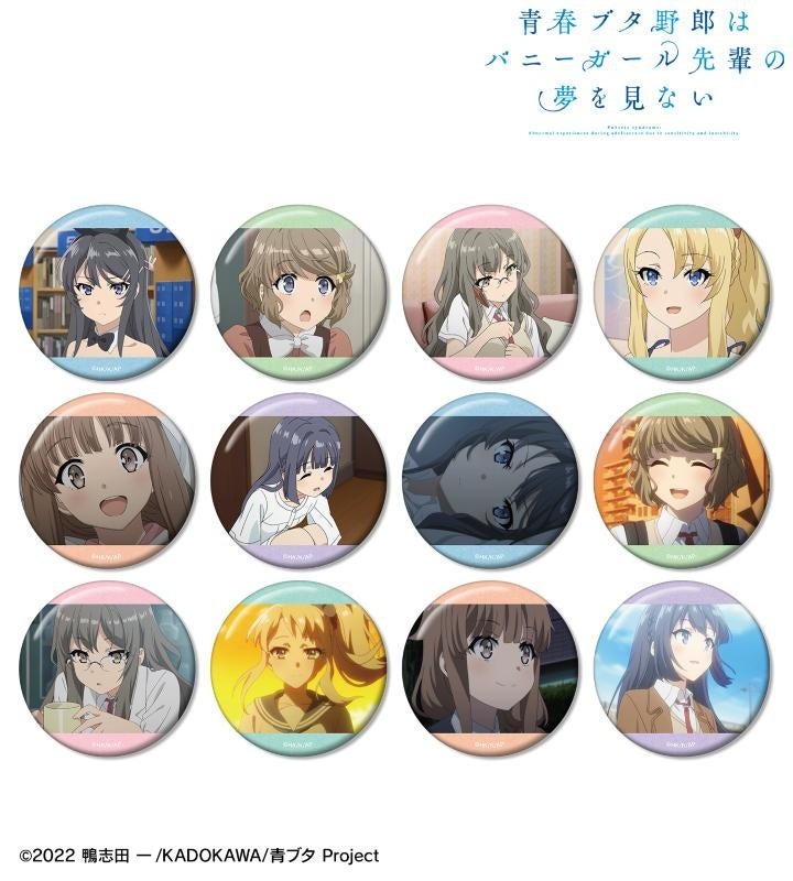 桜島麻衣、古賀朋絵、双葉理央、豊浜のどか、梓川かえで、牧之原翔子(中学生)、牧之原翔子(高校生)の印象的なシーンを缶バッジに仕上げました。