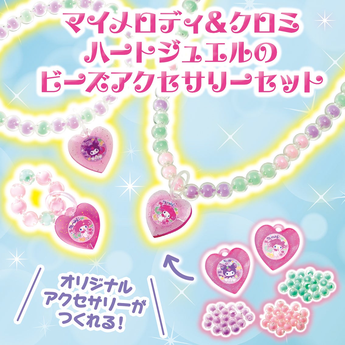 ふたりのかわいいシールでデコれる、「マイメロディ&クロミ ハートジュエルのビーズアクセサリーセット」です。