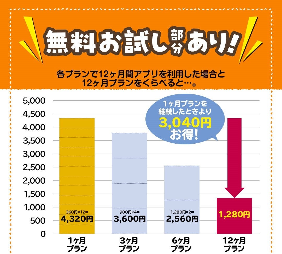 ■App Store価格:1ヶ月360円、3ヶ月900円、6ヶ月1,280円、12ヶ月2,100円